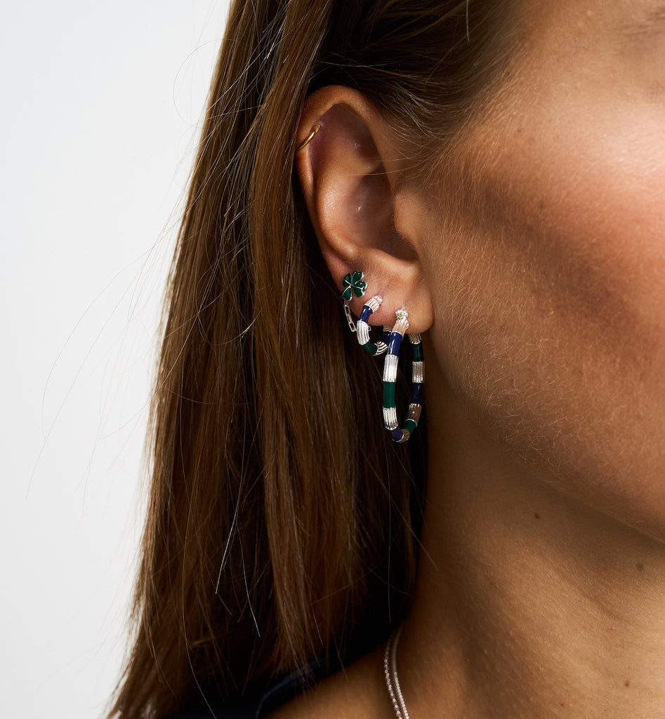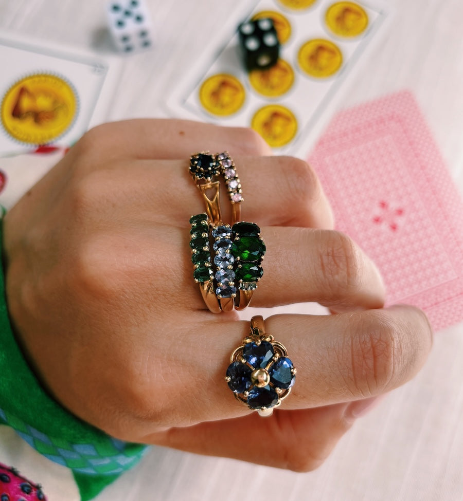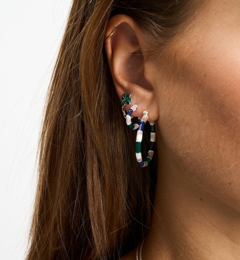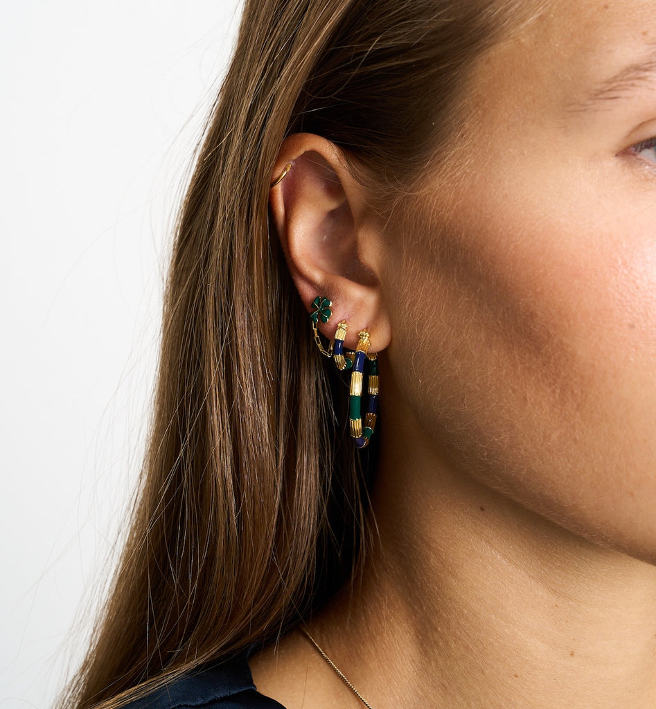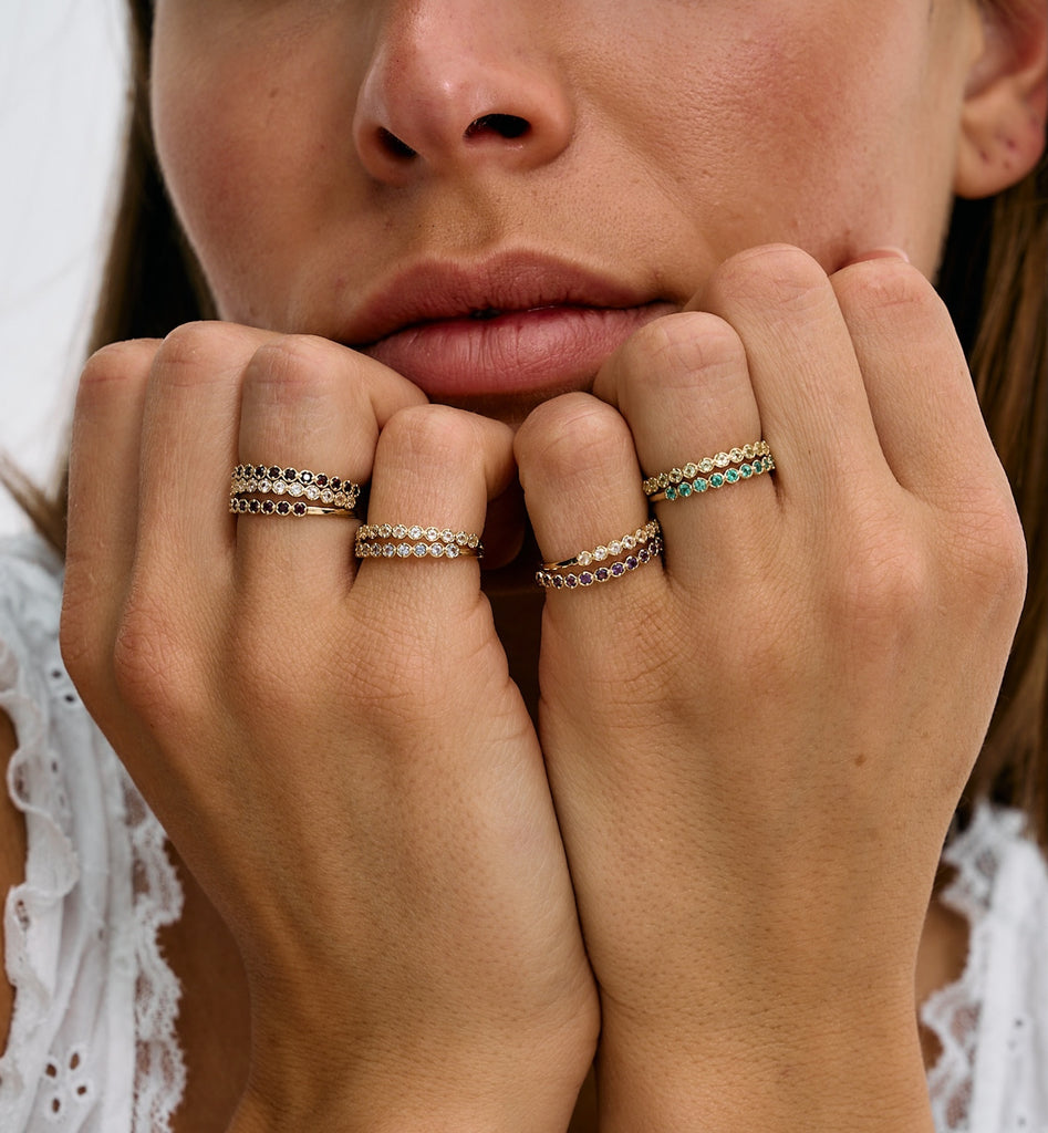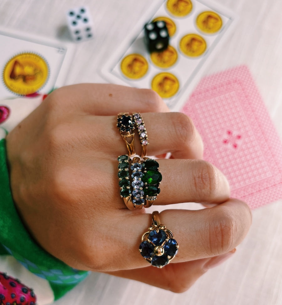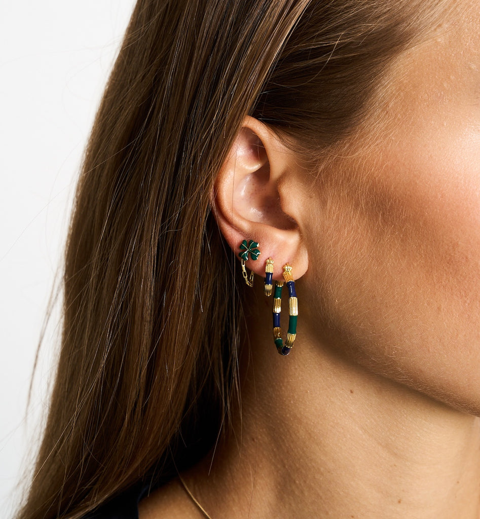 AN x Romy Piercing Studio's collection elevates your ear game with chic gemstone accessories in lustrous colors and 14k gold accents.