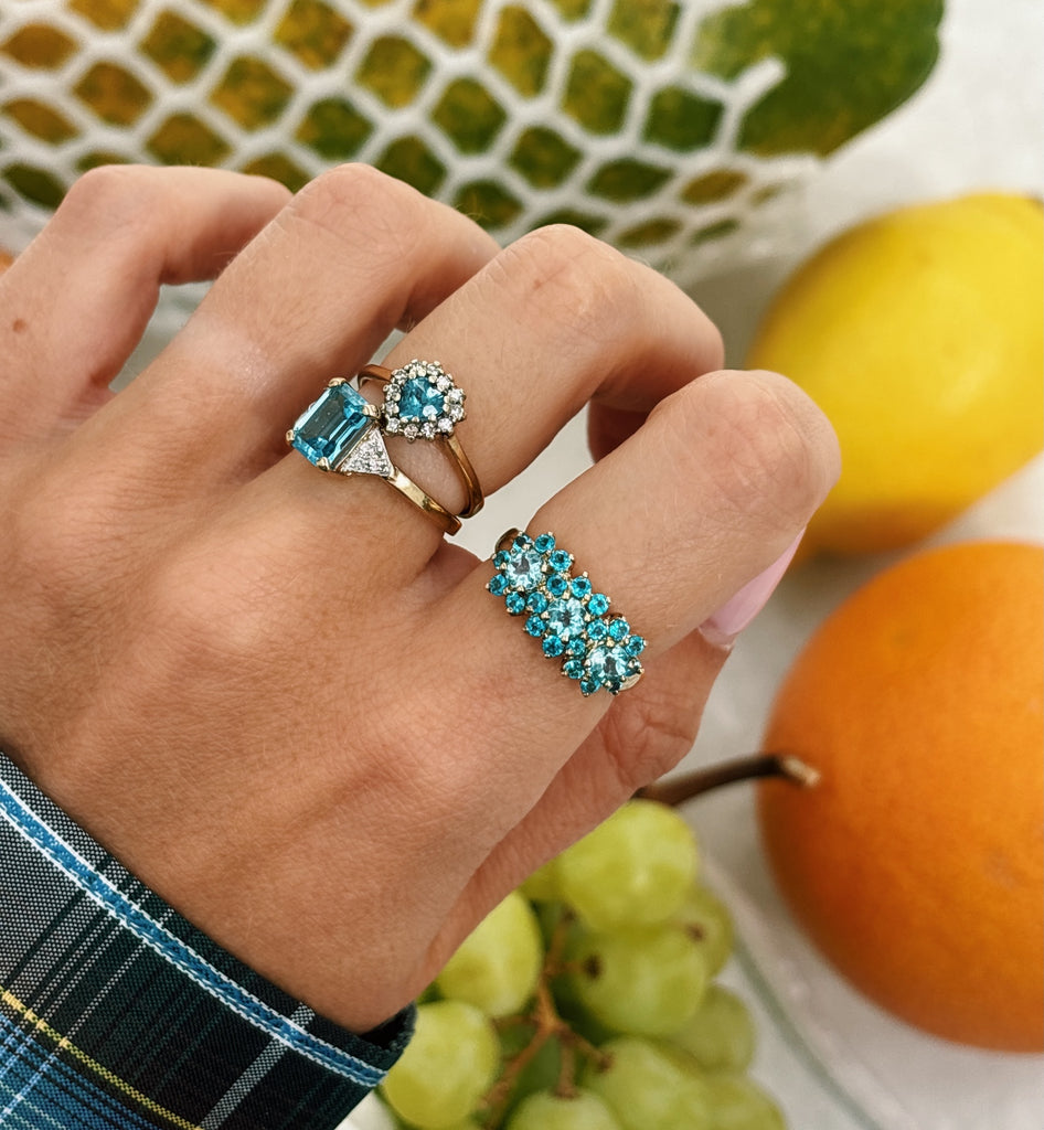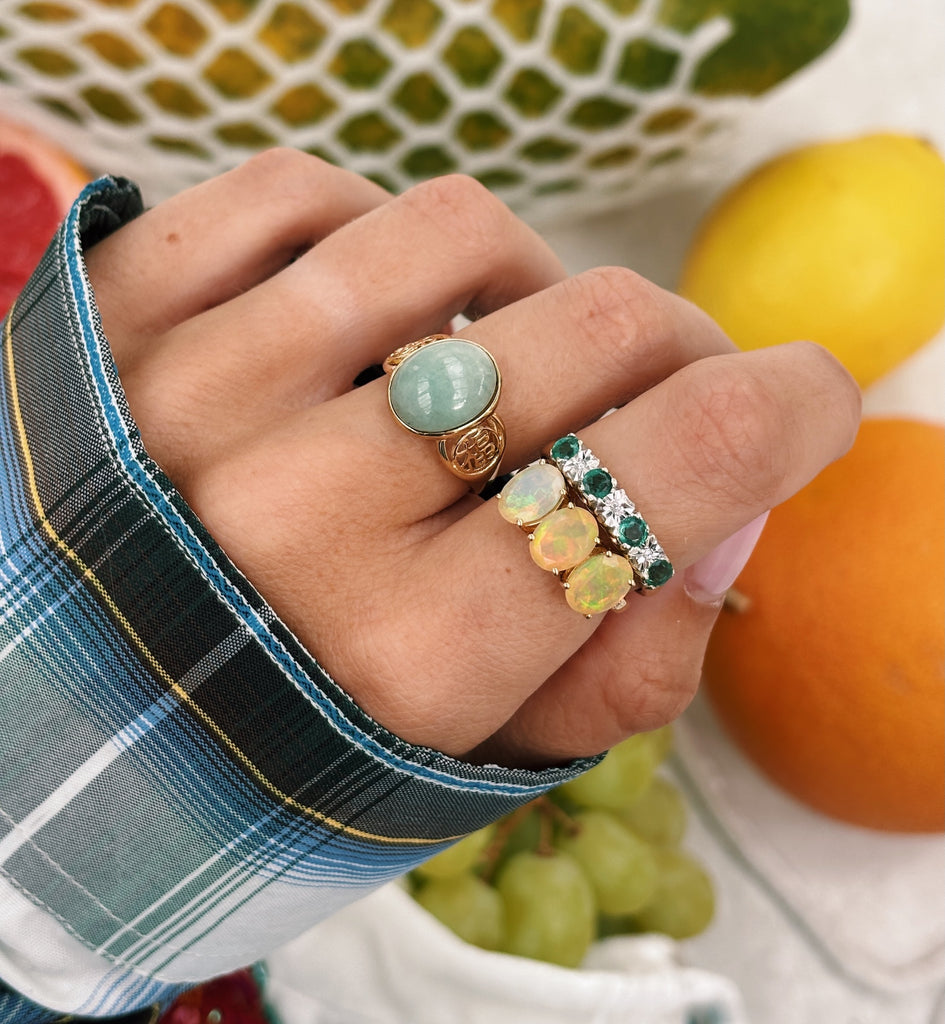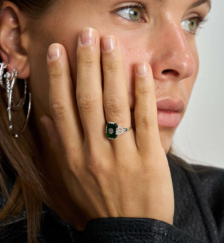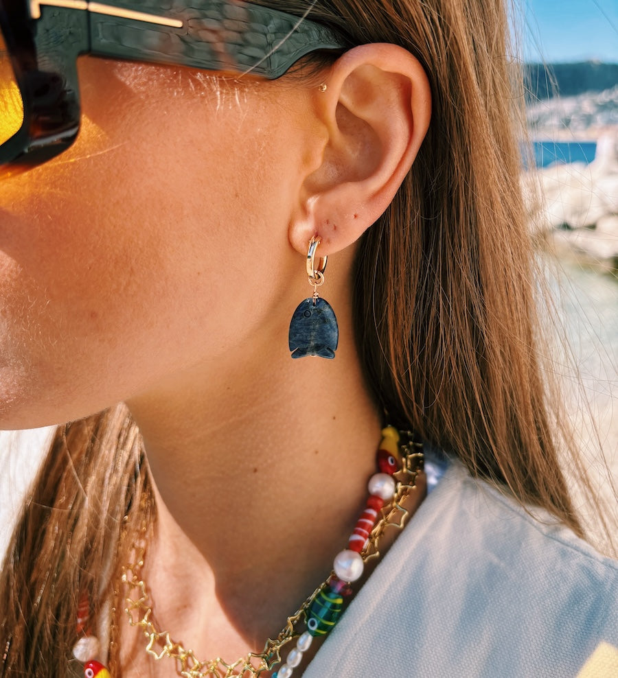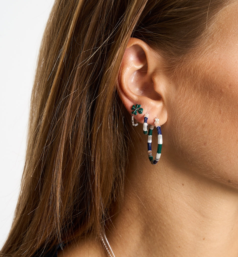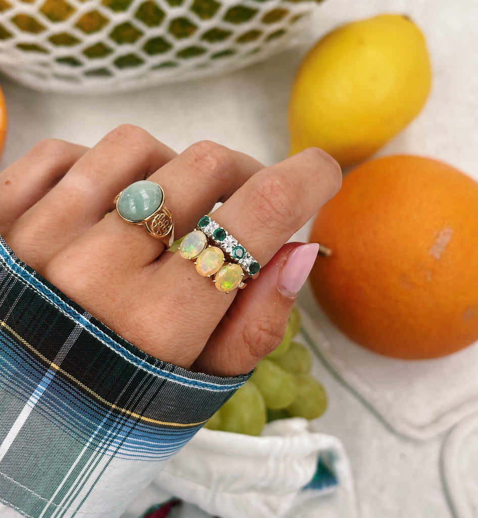 AN x Romy Piercing Studio's collection elevates your ear game with chic gemstone accessories in lustrous colors and 14k gold accents.