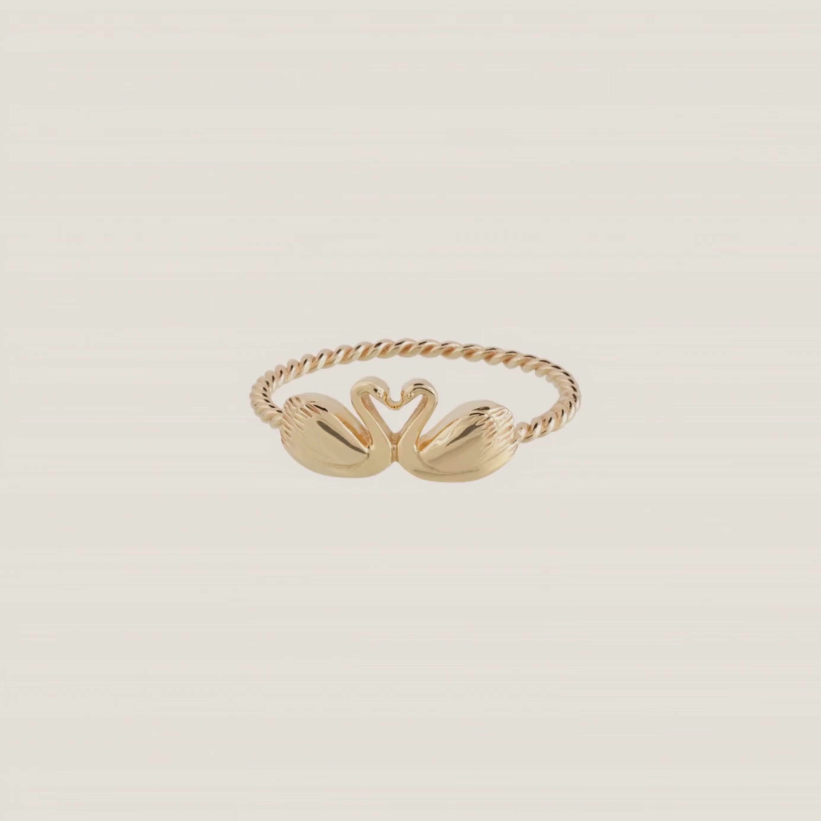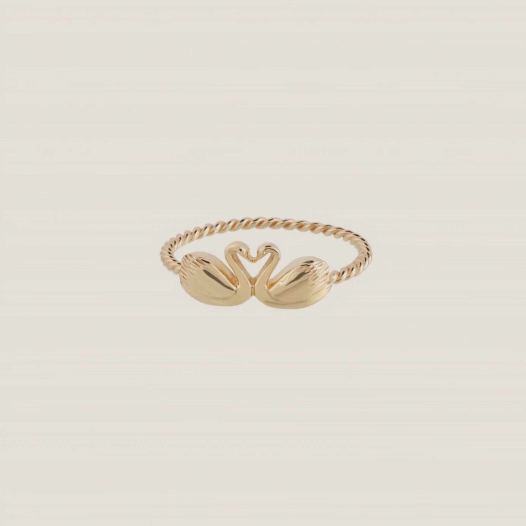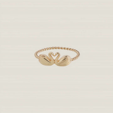 The Golden Swans Ring 14K is a beautiful item made of 14K recycled gold. The ring has a thinly twisted band which gives it a beautiful detail. The ring is inspired by the iconic Marie Antoinette and her love for nature and animals. Pair it with other items from the collection for the most beautiful combinations.