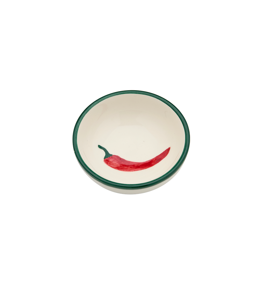 The Peperoncino Tapas Bowl is a fun little bowl with a hand-painted drawing of a chilli pepper. Combine this bowl with the other items from the collection for summer tapas evenings.