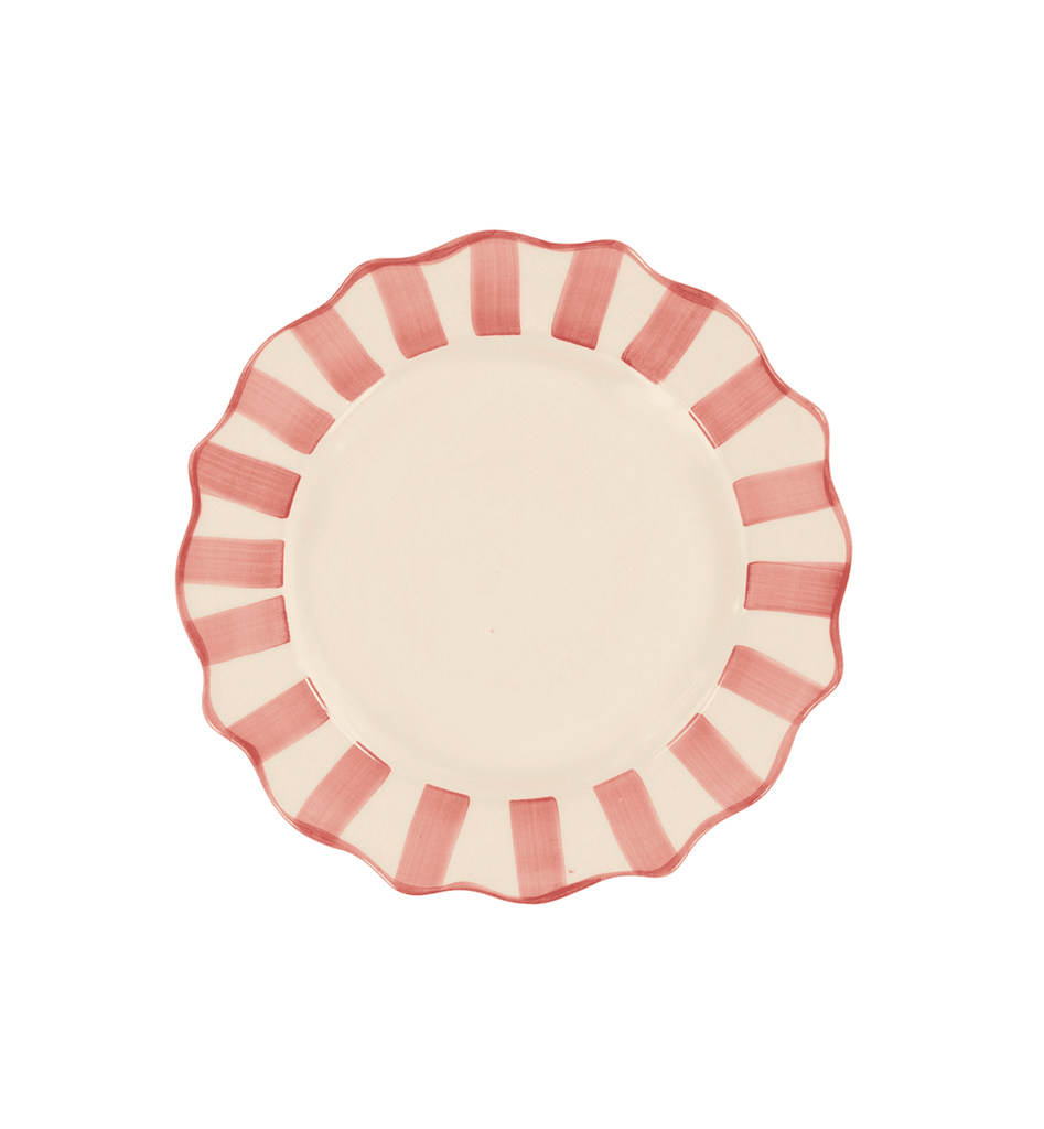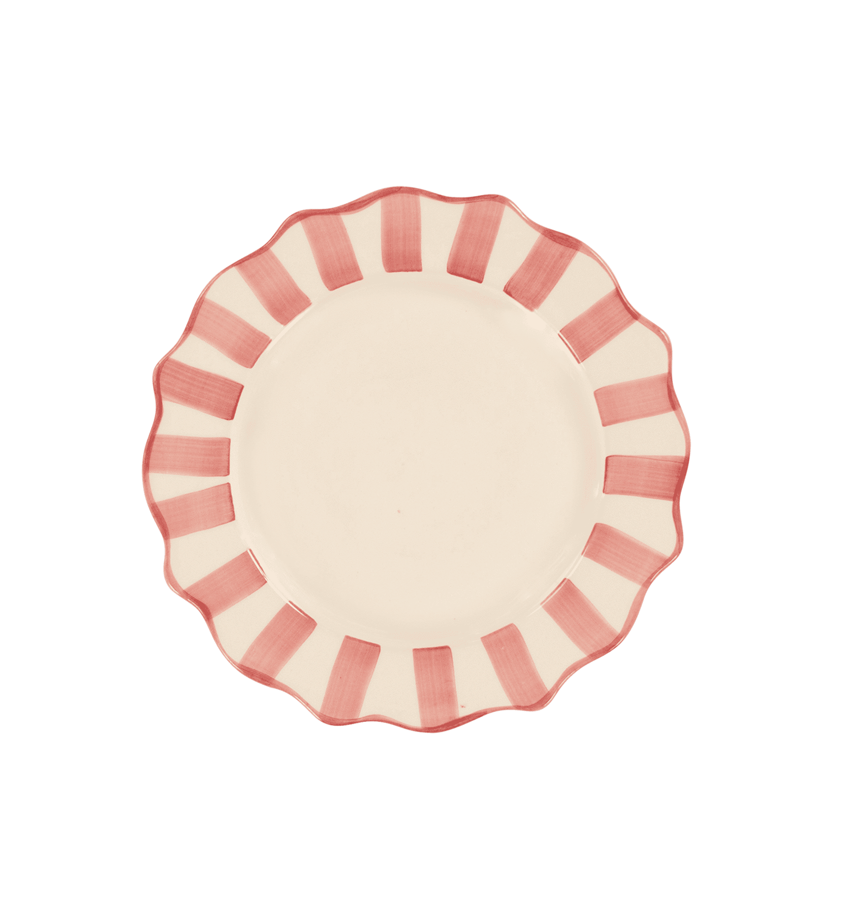 The Pink Scalloped Breakfast Plate has a fun, vibrant design that effortlessly brightens up your table setting. The hand-painted stripes around the outer circle of the plates make the item playful and extraordinary. Combine it with the other plates from our collection and create your own colourful take on life.