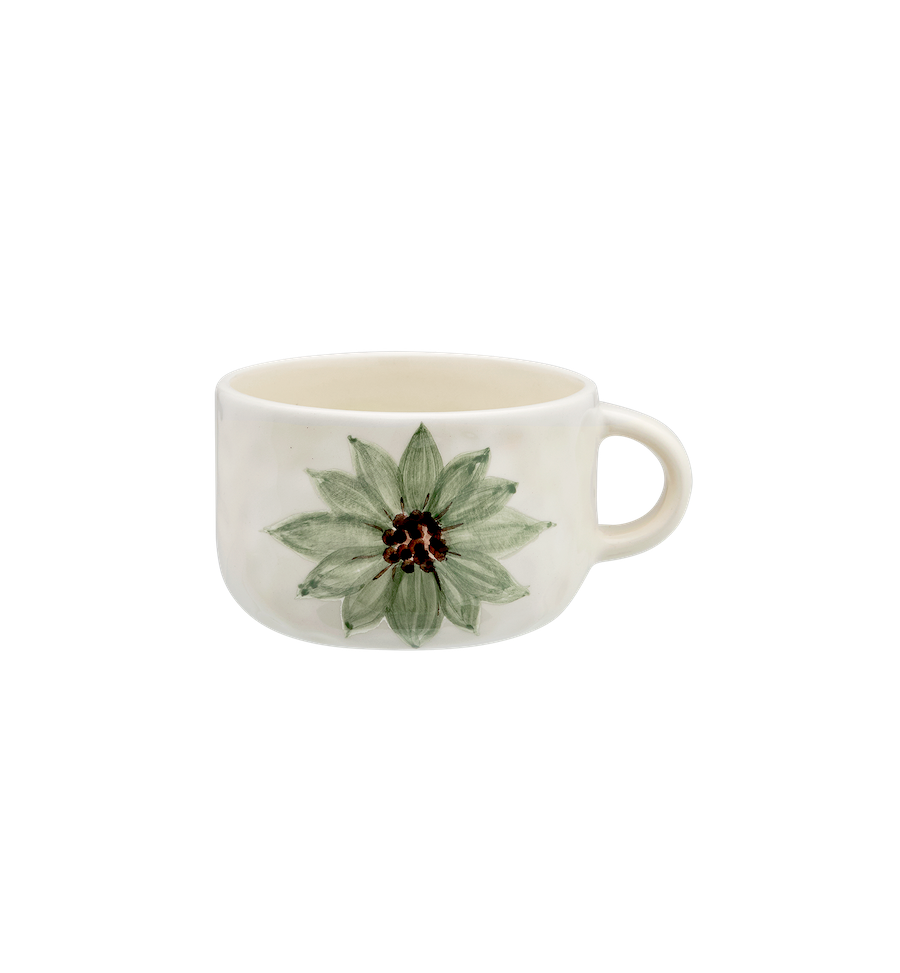 The Lily Cappuccino Mug exudes natural beauty with a sophisticated green flower. This ceramic mug brings tranquillity and style to your coffee moment. A subtle detail that makes your day just that little bit brighter.
