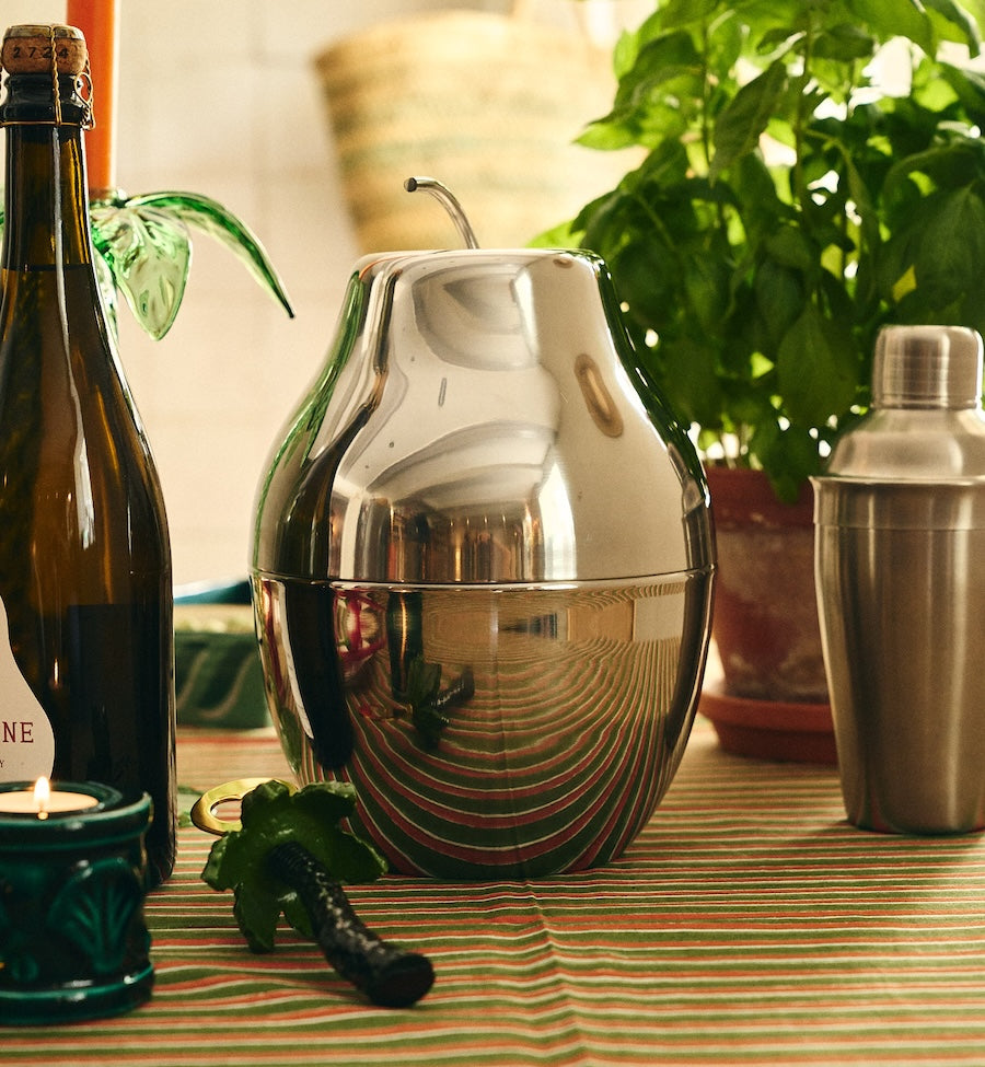 The Pear Ice Bucket is an ice cooler shaped like a beautiful pear. This item is a unique combination of playful and chic. Perfect for keeping your drinks cool during sunny dinners and festive evenings.