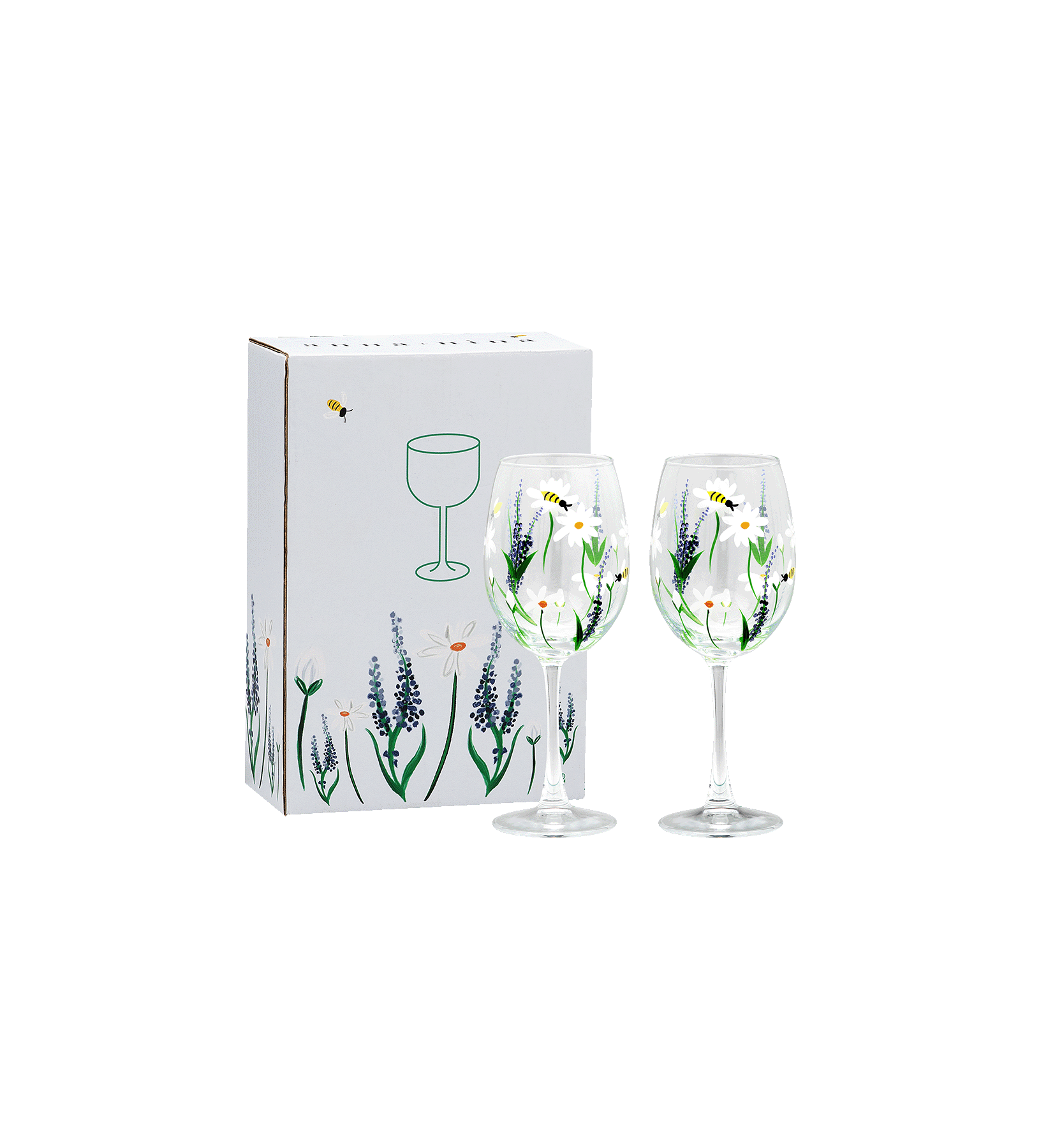 The Springtime Toast Wine Glass Set of 2 is a festive ode to spring. This hand-painted glass is decorated with playful flowers and cheerful bees, as if spring itself is toasting. Perfect for sparkling moments, from a sunny brunch to a summer evening in the garden.