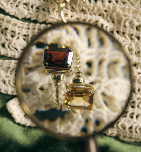 The Nina Ring Citrine 14K is a beautiful item made of 14K recycled gold. It features a twisted ring band encrusted with a square-cut citrine gemstone. This is the perfect addition to any jewellery collection.