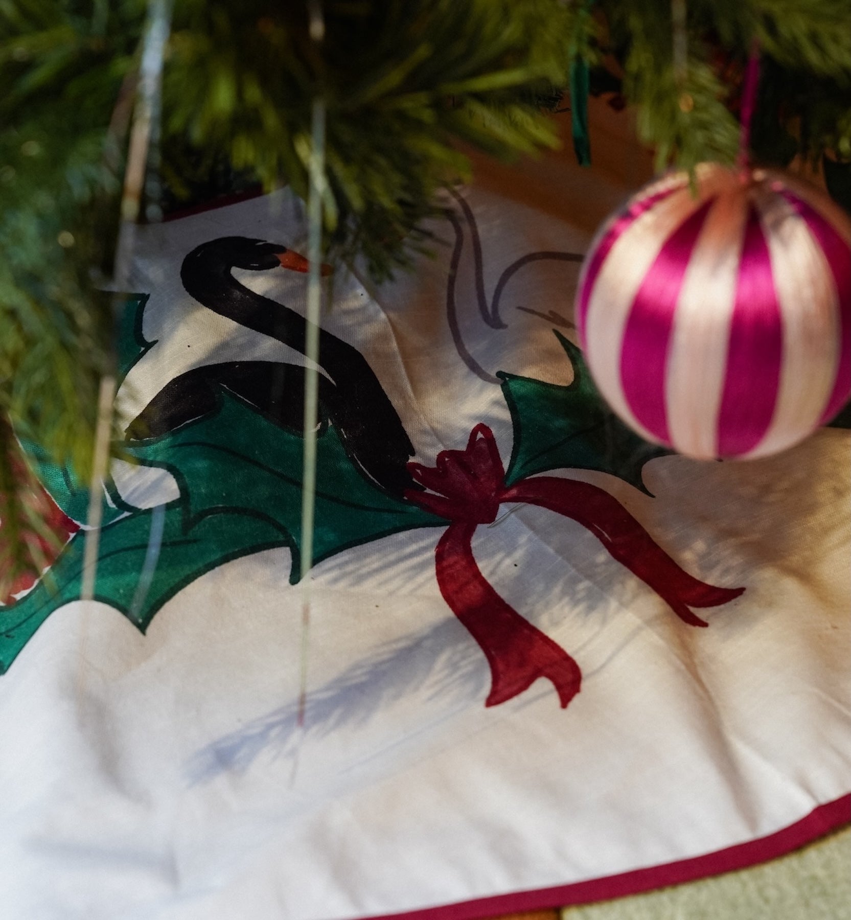 The Christmas Wreath Tree Skirt is a fun item to give your Christmas tree just the finishing touch. This item has the design of a Christmas wreath and a bow closure. Combine it with the other items in our collection for the most magical Christmas tree.