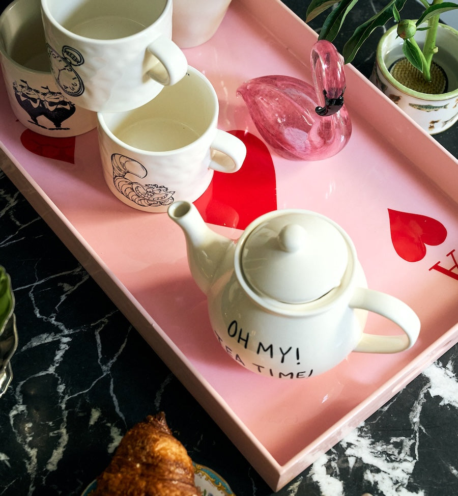 The Queen of Hearts Tray is a charming piece in soft pink, adorned with bold red hearts—fit for a tea party with a twist. Perfect for serving sweet treats or simply displaying your favourite treasures, this tray brings a playful pop of romance to any corner of your home. Pair it with other items from the collection, and let the magic unfold.