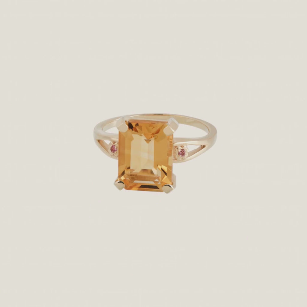 De Aurora Glace Ring 14K is gemaakt van 14K gerecycled goud. De ringband heeft uitgesneden details met een klein bloemmotief aan elke kant ingelegd met een glinsterende roze toermalijn. De prachtige citrien geeft de ring een betoverend gevoel, die je voor altijd wilt vastleggen.