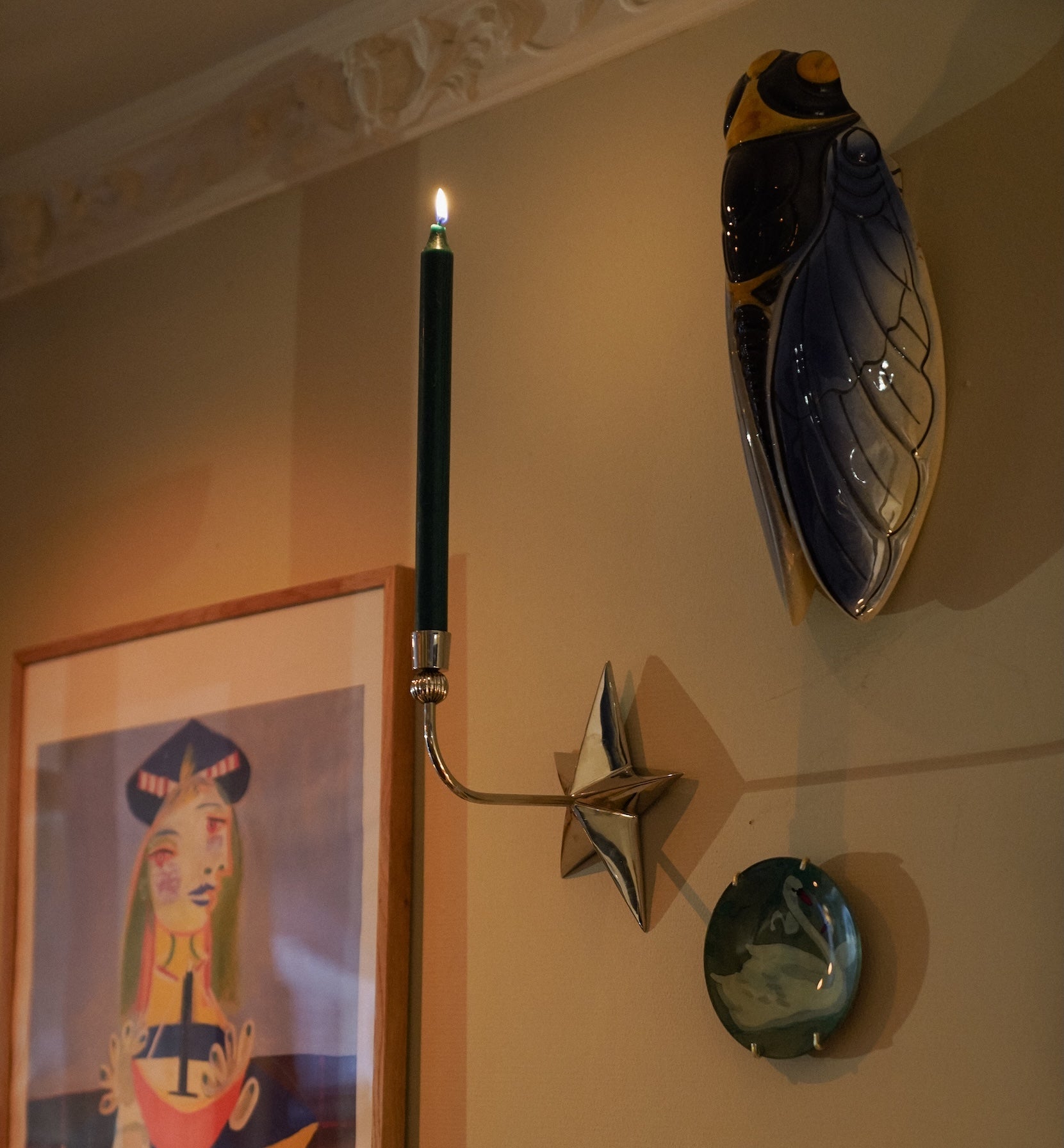 De Nova Wall Candle Holder is een speels item in de vorm van een ster, bedoeld om aan je muur te hangen. Deze kandelaar is een echte blikkenvanger in je interieur. Combineer het samen met de kaarsen uit onze collectie voor de mooiste combinaties.