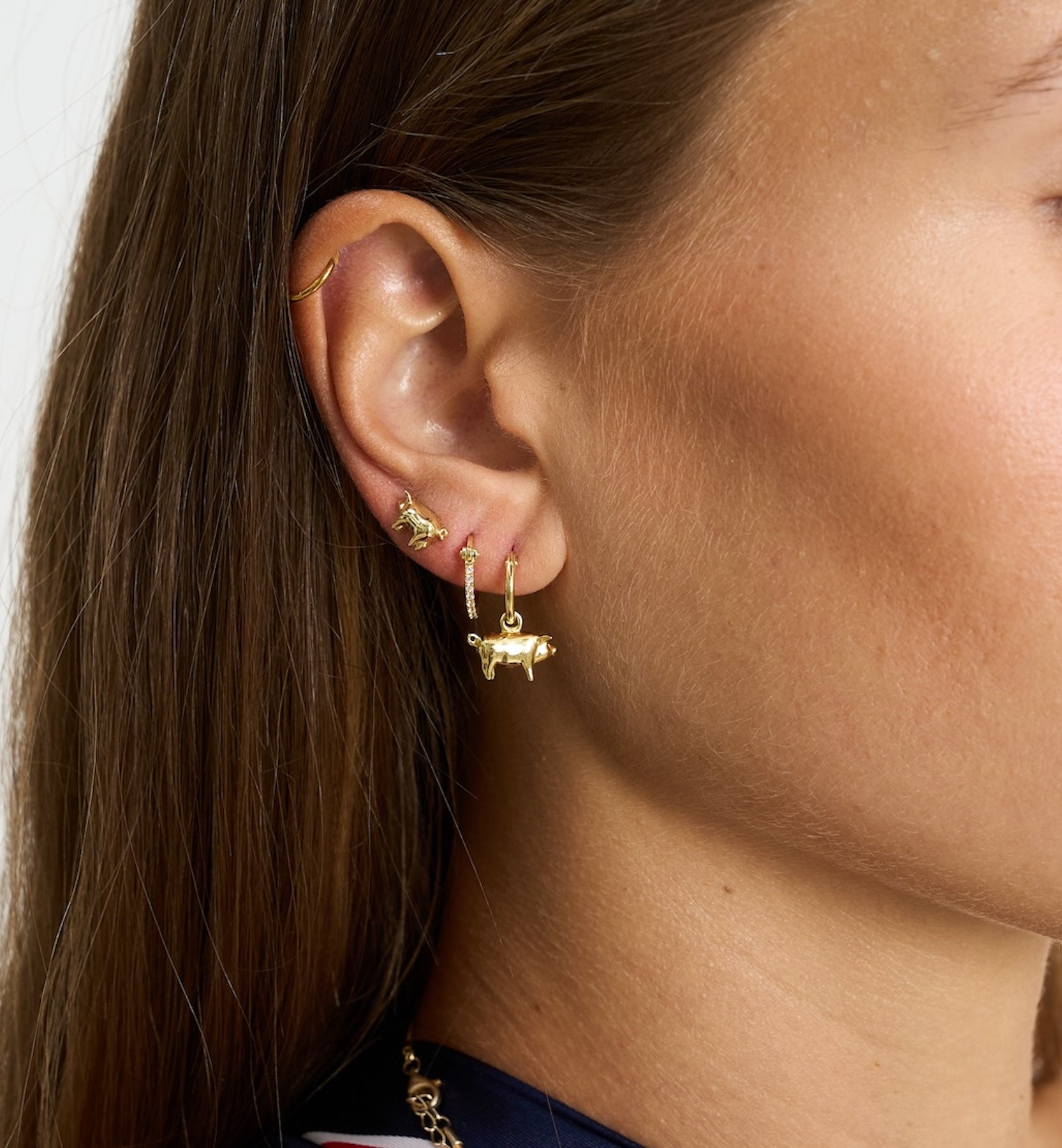 De Single Piglet Stud heeft de vorm van een varkentje met een kleine krulstaart. De stud is de perfecte aanvulling in je sieraden collectie.