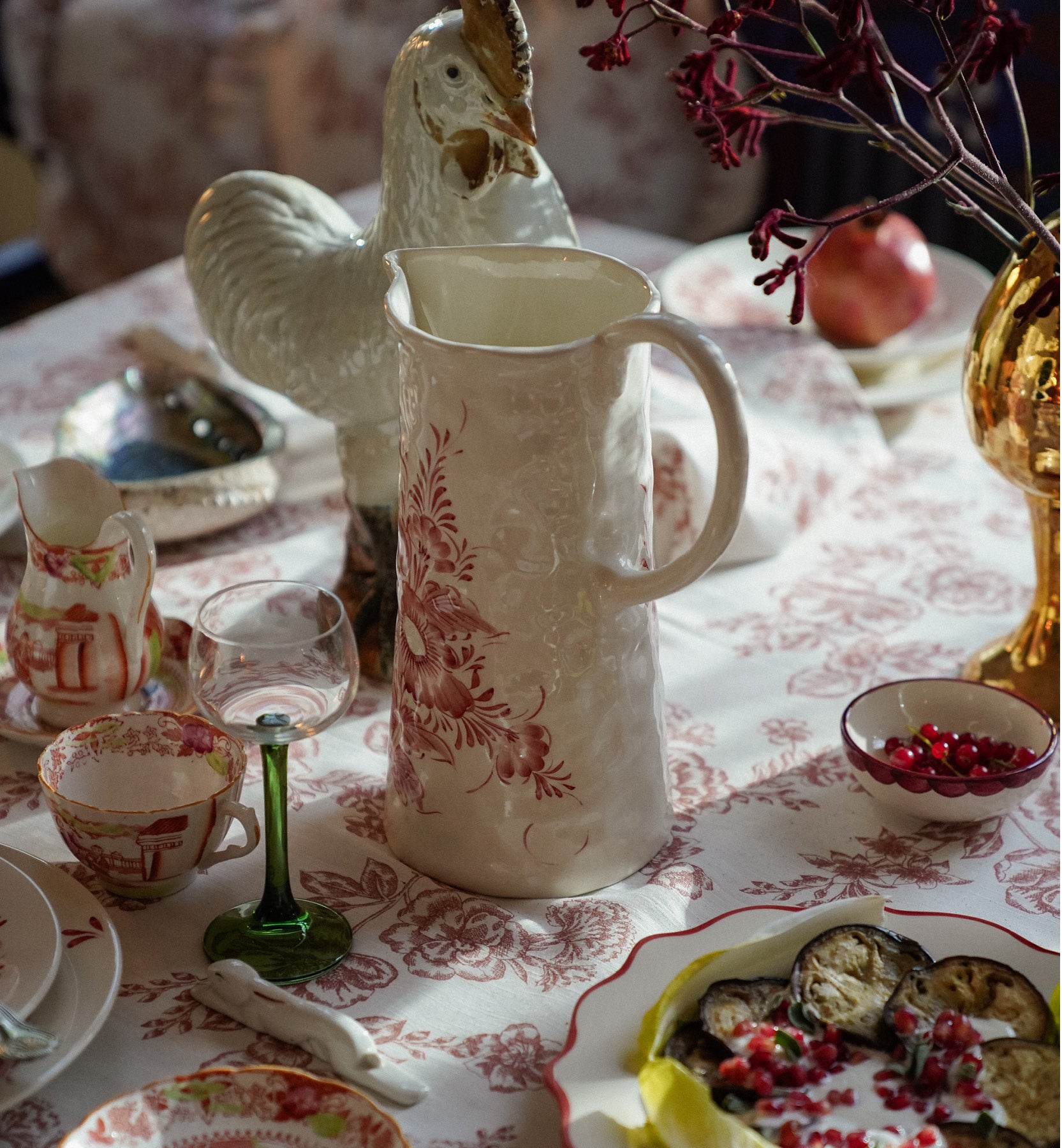 De Whimsical Rose Jug is een prachtig handgeschilderd item. De karaf heeft een uniek design wat elke tafelschikking nog wat mooier maakt. Combineer het samen met je favoriete items uit onze collectie voor de mooiste tafelsetting.
