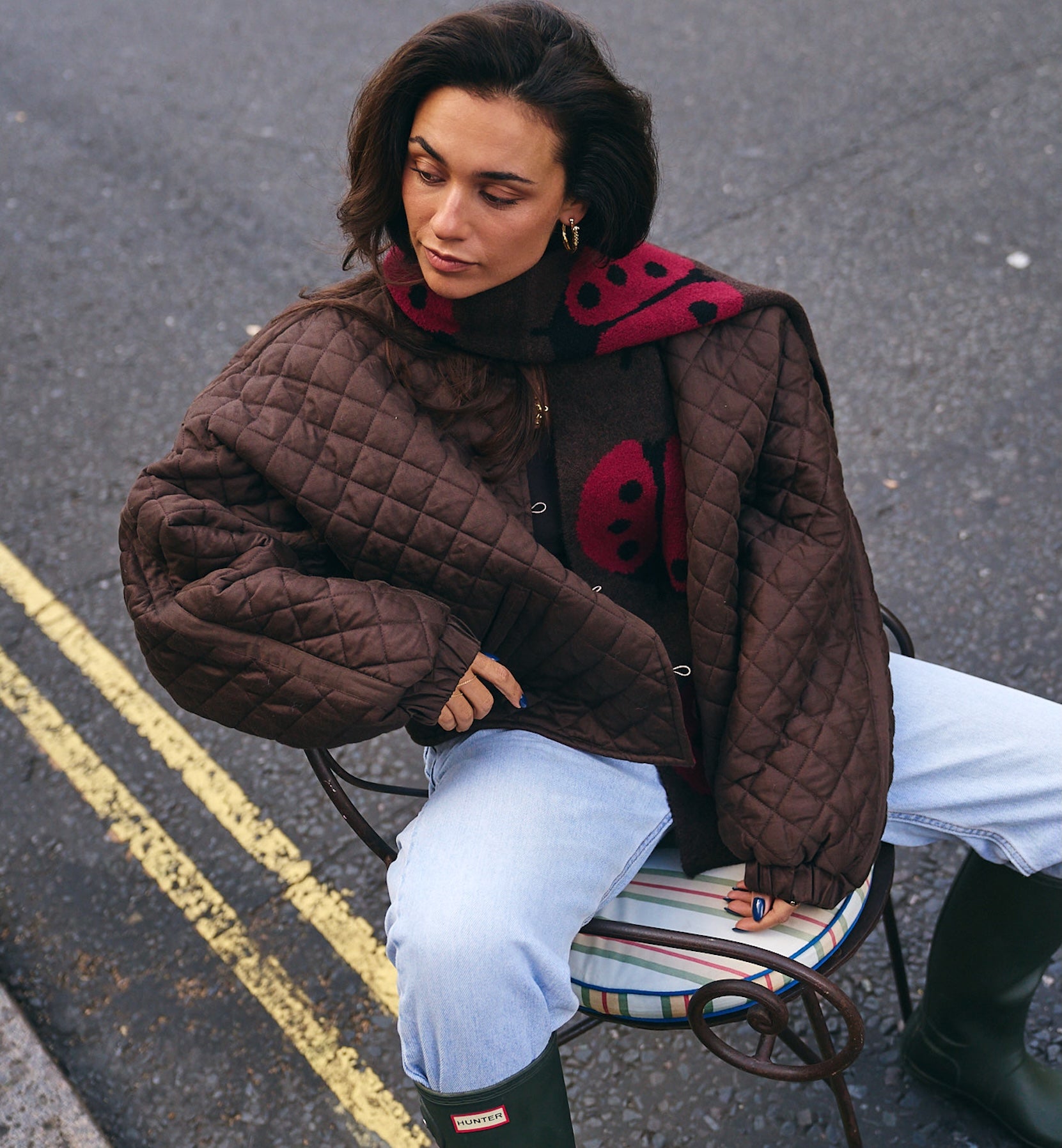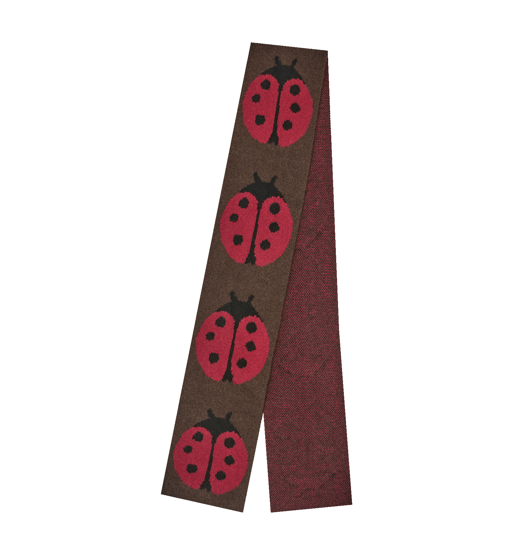 De Ladybird Scarf is een speelse knipoog naar de Engelse tuin. De donkerbruine sjaal is gemaakt van 100% acryl en versierd met lieveheersbeestjes, gemaakt in de intarsia-techniek. Een vrolijke accessoire dat elke outfit een charmante twist geeft. Old English, maar dan cool again.