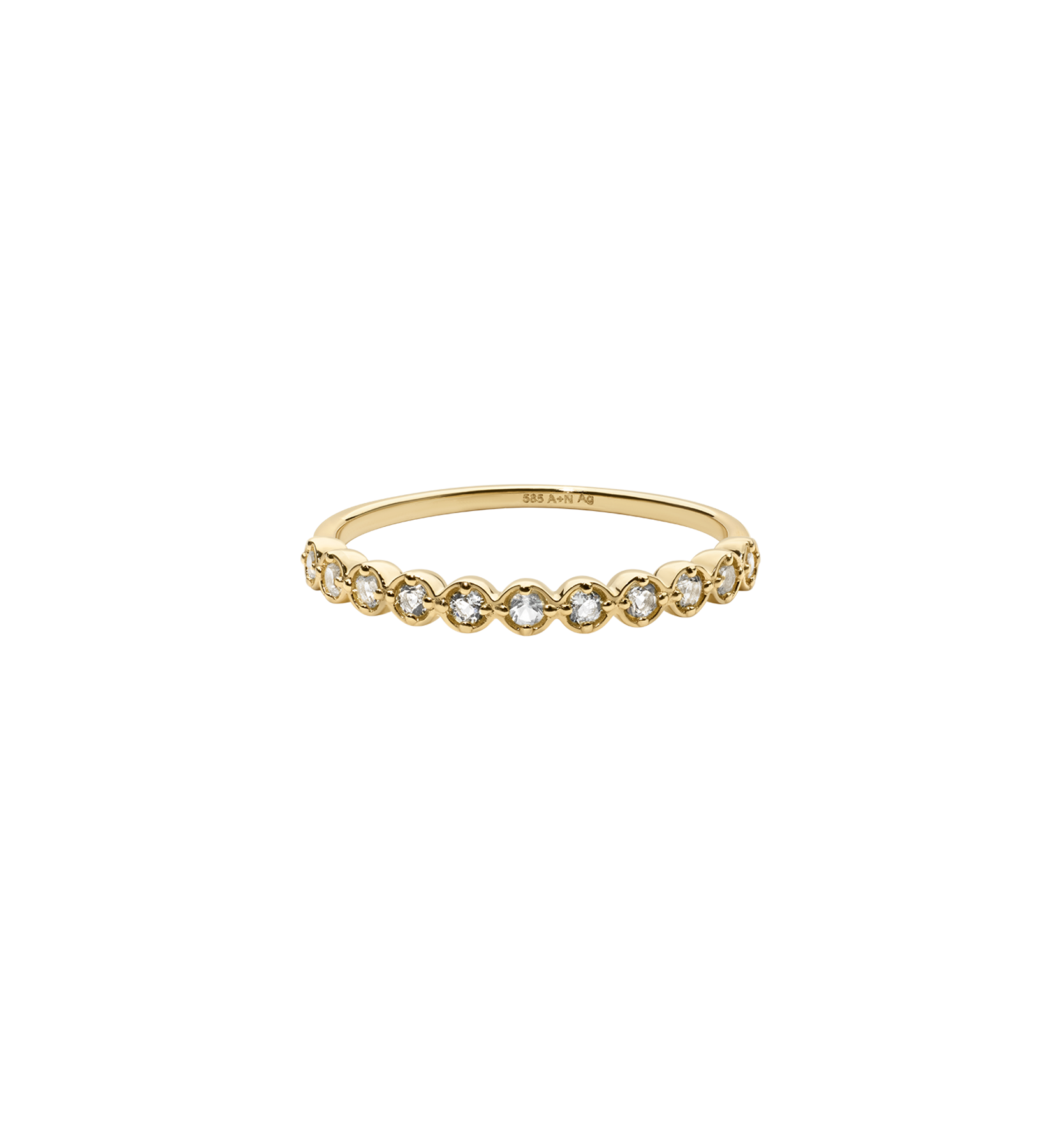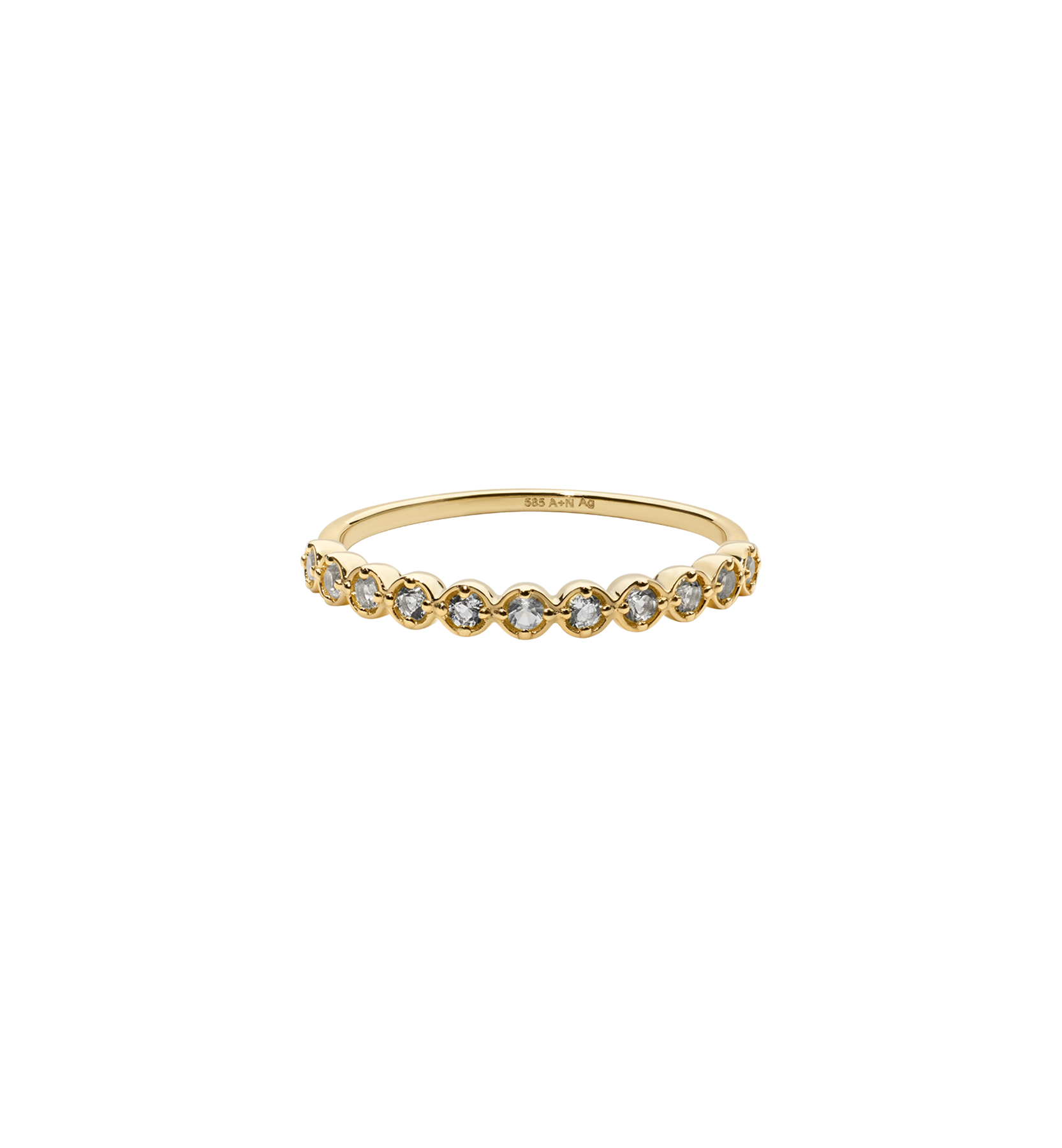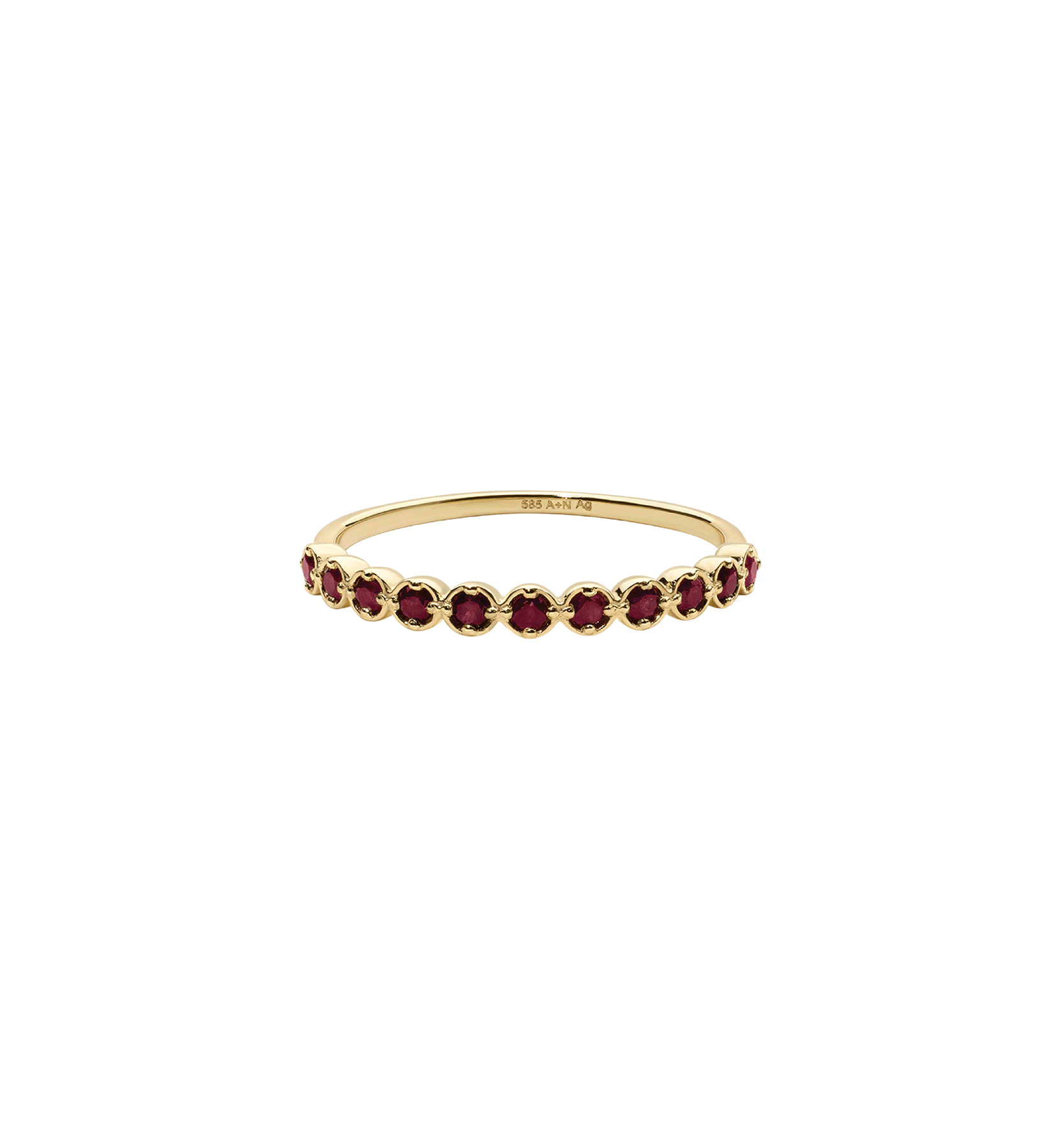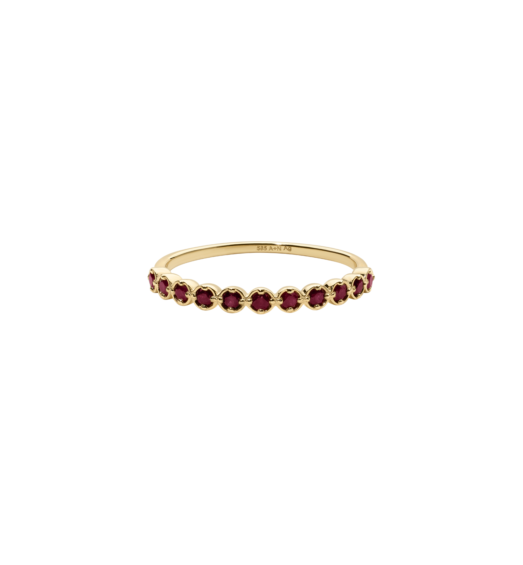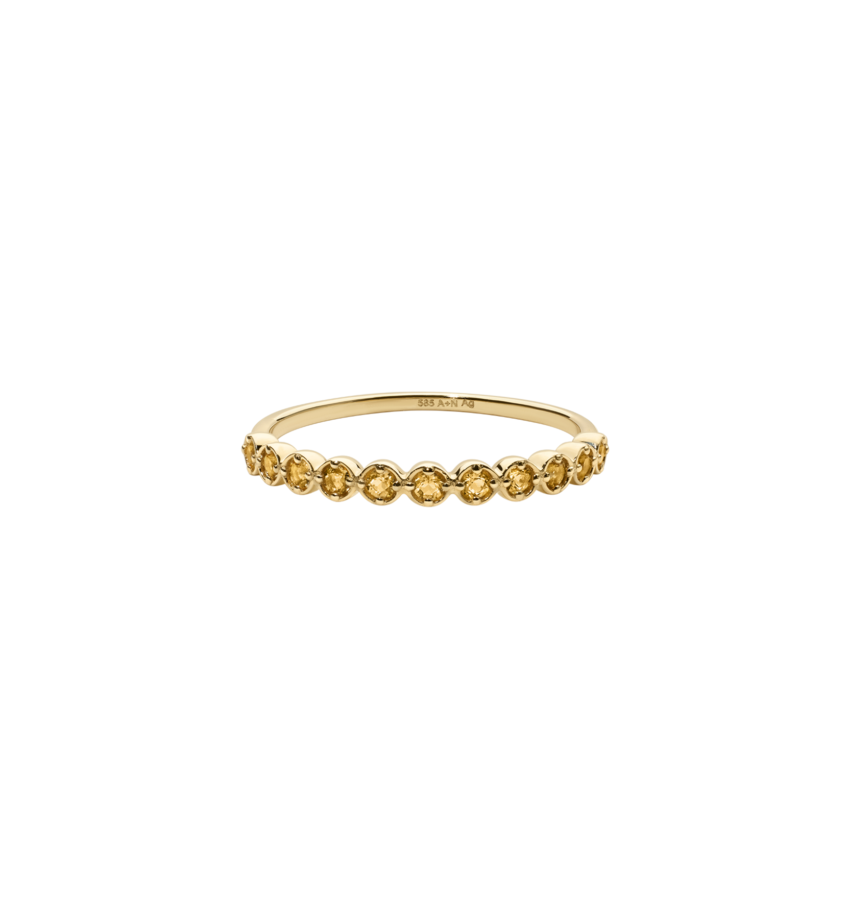 De Birthstone Orbit Ring 14K is een speelse ode aan kleur en betekenis. Elk item is gemaakt van 14K goud en ingelegd met elf schitterende edelstenen, waardoor hij in elk licht straalt. Kies jouw eigen geboortesteen of die van iemand die je dierbaar is en mix & match voor een persoonlijke look. Perfect om te stapelen of juist subtiel solo te dragen.