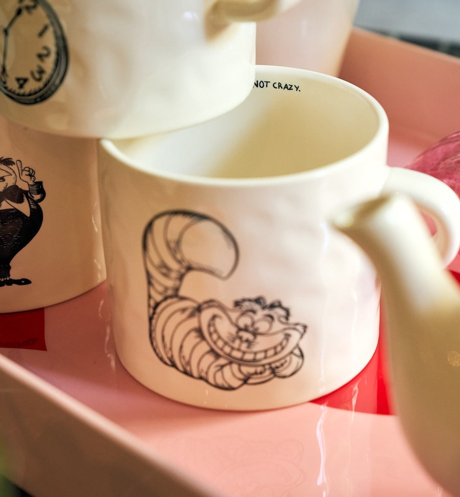 De Cheshire Sip Mug is voorzien van de beroemde ondeugende Cheshire Cat met zijn iconische grijns, die je eraan herinnert dat je met een beetje mysterie een heel eind komt. Bij elk kopje koffie of thee voel je een vleugje van de charme van Wonderland - onverwacht, nieuwsgierig en een beetje gek. Perfect voor diegenen die hun ochtenden graag met een glimlach en een vleugje magie doorbrengen.