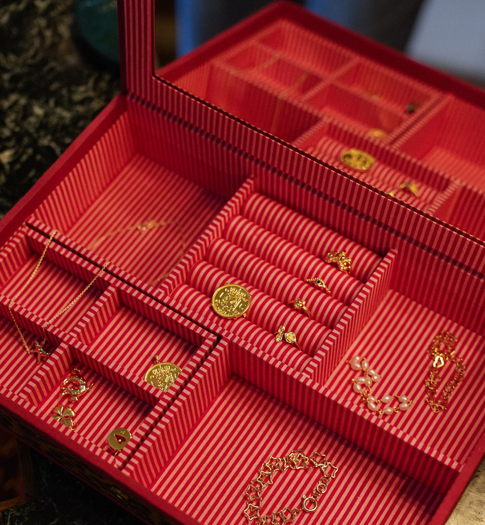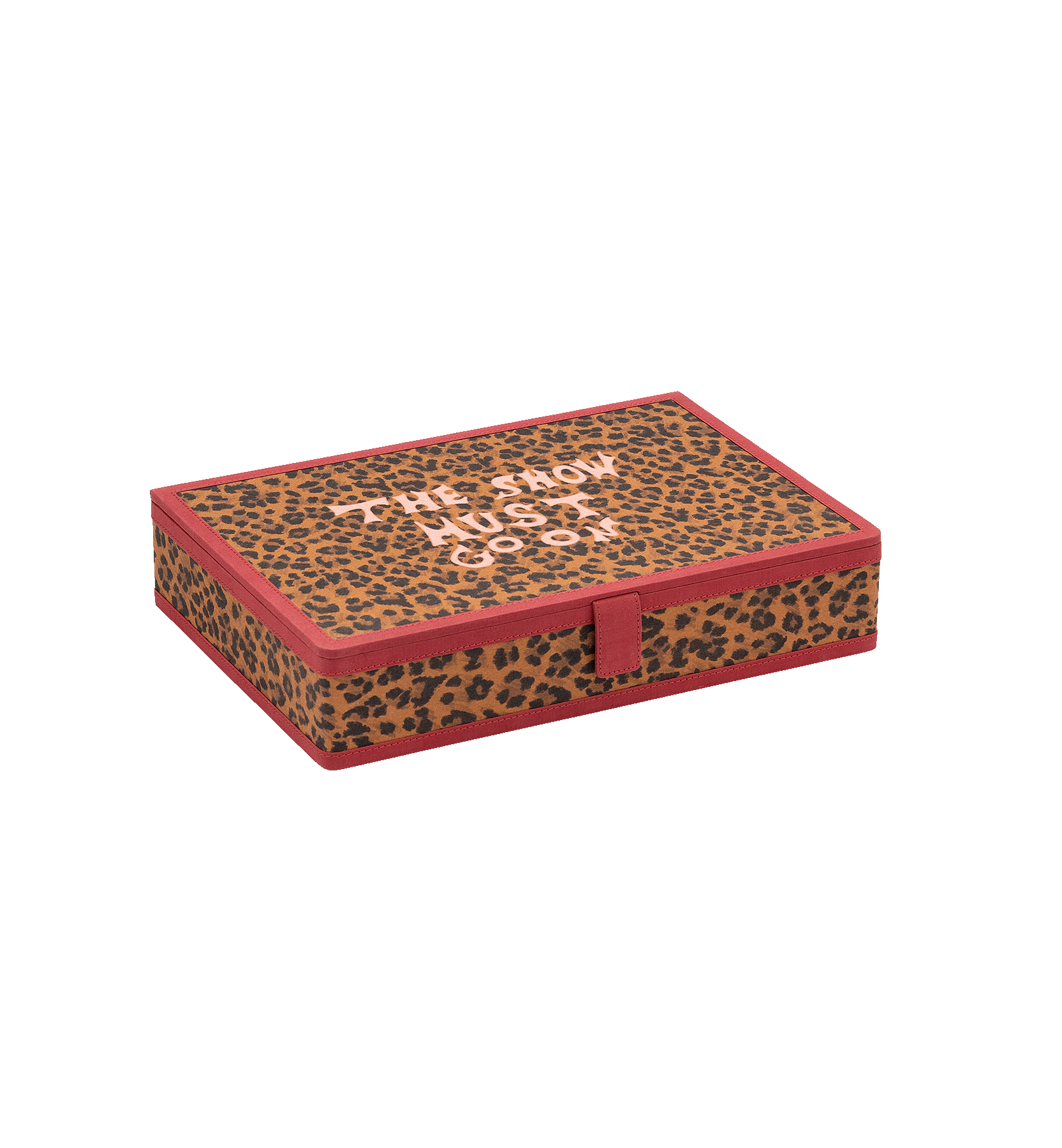 De The Show Must Go On Jewellery Box houdt je kostbare juwelen veilig en georganiseerd. De prachtige doos is bekleed met de mooiste stof en is verdeeld in compartimenten die bedekt zijn met een vrolijk gestreept ontwerp om een oogverblindende ervaring te garanderen bij het openen van je schatkist. Dit is een absolute must voor alle juwelenverzamelaars!