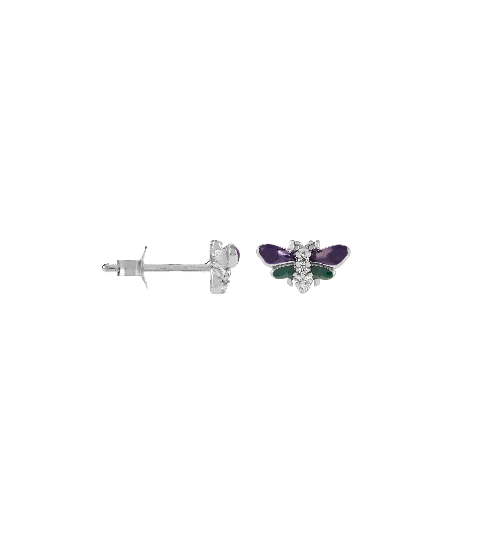De Single Night Fly Stud is een speelse en charmante toevoeging aan je sieradencollectie. Dit schattige item, door de magie van nachtvliegers, heeft prachtige details zoals de ingelegde zirconia’s.