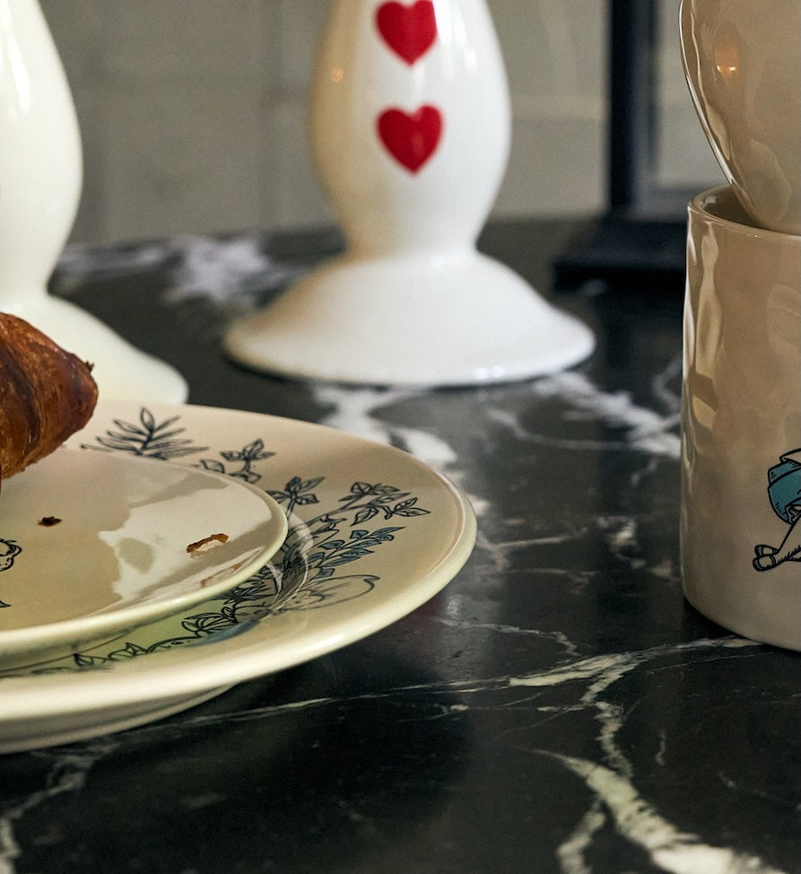 De Wonderland Whimsy Breakfast Plate is versierd met speelse illustraties geïnspireerd op de nieuwsgierige wereld van Alice in Wonderland. Van grijnzende katten tot dansende theepotten, elk detail nodigt je uit om het ontbijt extra bijzonderder te maken. Combineer het met een dampende kop thee en laat de eigenzinnigheid al beginnen voordat de dag begint.