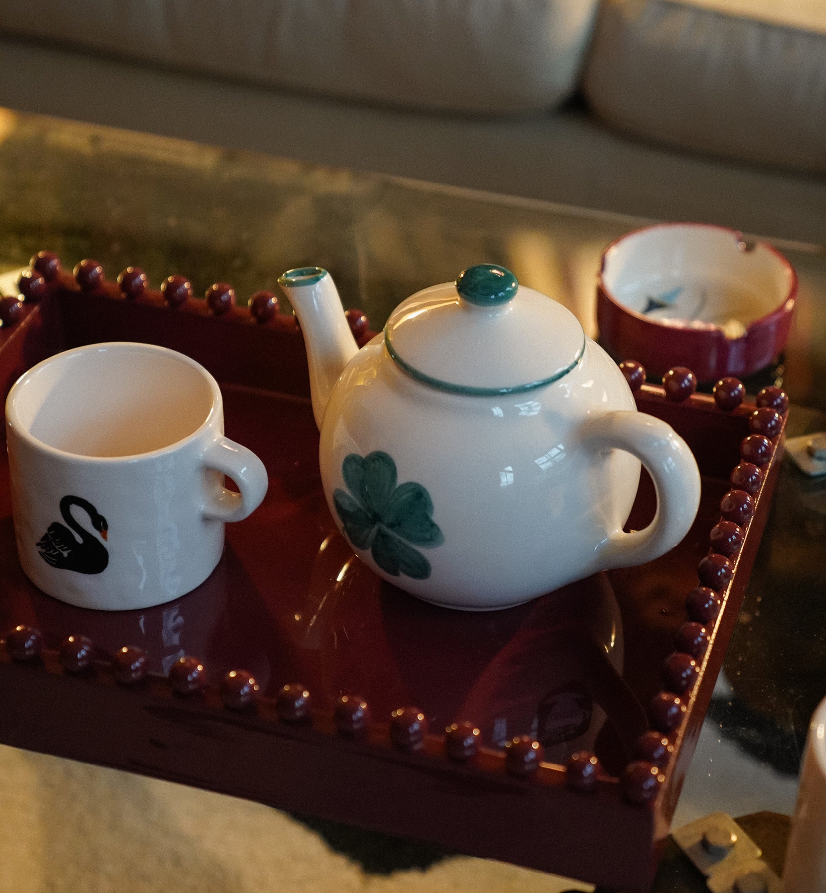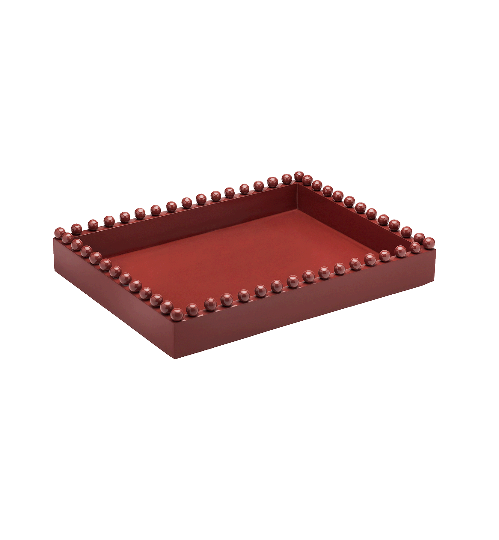 De Lucy Tray is een prachtig item dat je interieur nog leuker zal maken. Het dienblad heeft een rechthoek ontwerp met de mooiste diep rode kleur. De rand van de tray heeft een bolletjes ontwerp wat net dat extra detail geeft. Combineer het met je favoriete kaarsen of boeken op dit prachtige exemplaar voor de finishing touch.