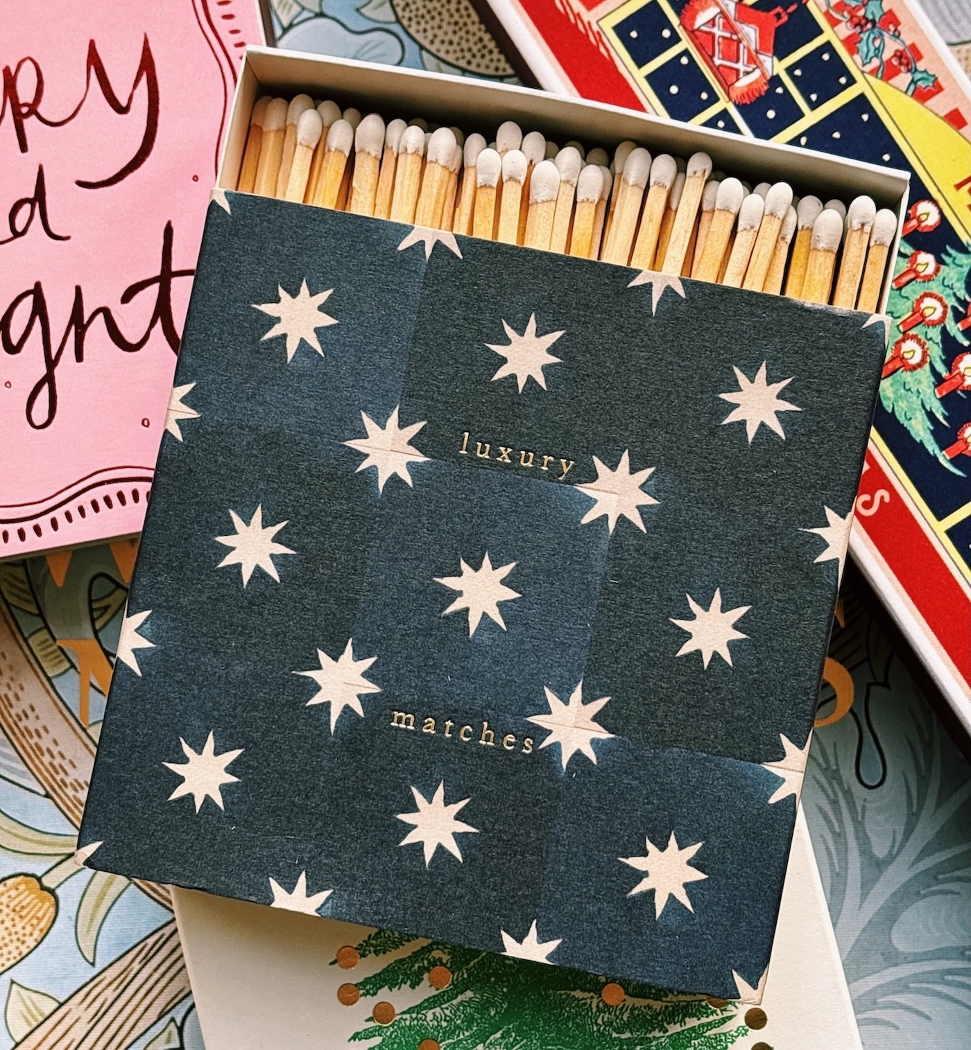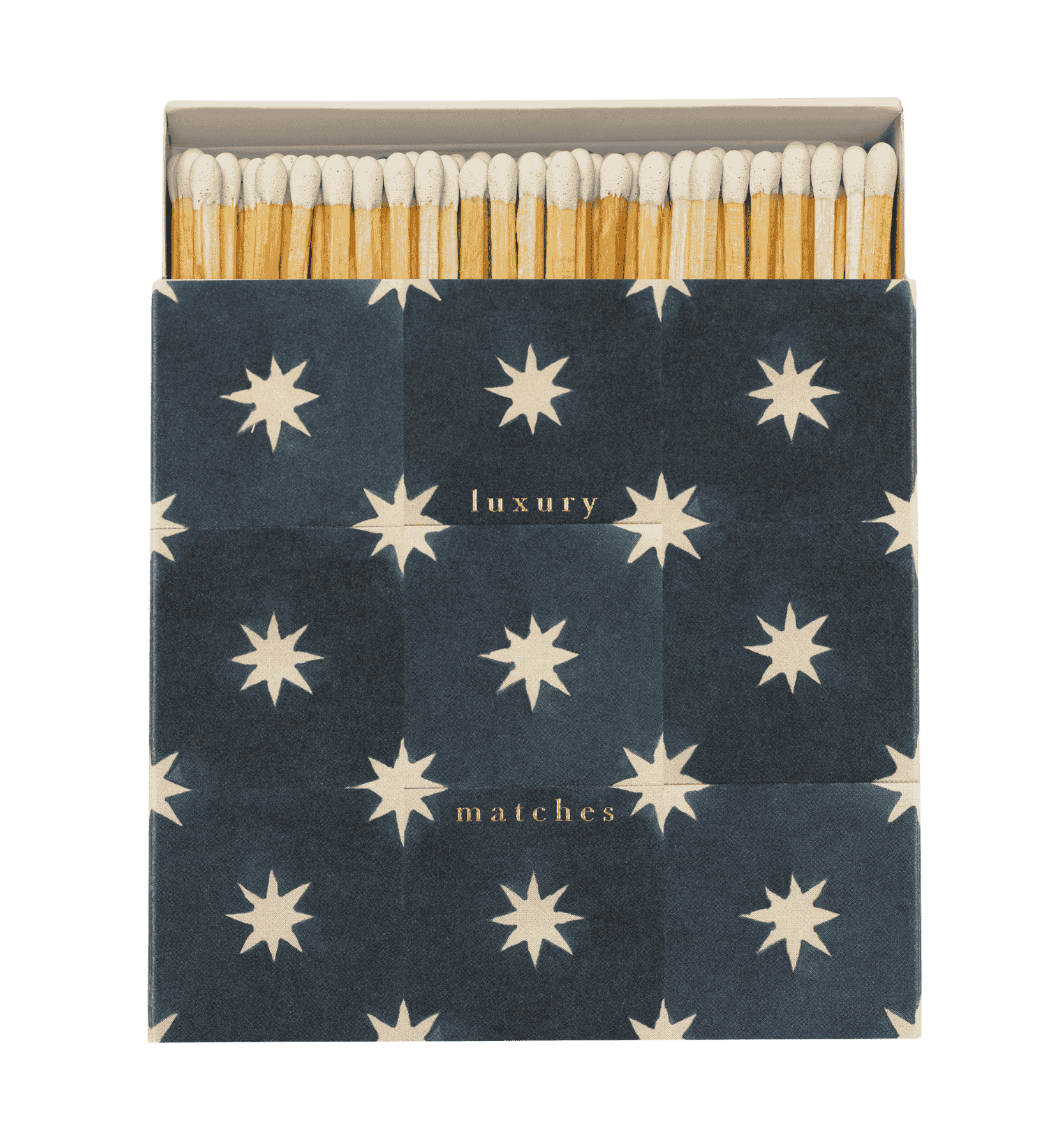 De Archivist Navy Star Tile Matches maken het aansteken van je favoriete kaars nog magischer. Deze sprankelende lucifers worden geleverd in een prachtig doosje, ontworpen om elke salontafel of schouw net dat beetje extra charme te geven. Gemaakt van natuurlijke materialen die zorgen voor een authentieke, warme uitstraling.