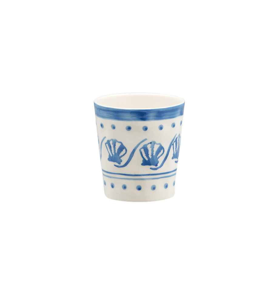 De Azure Shore Coffee Cup neemt je mee naar een rustige kustlijn vol zomerse herinneringen. Met delicate blauwe tekeningen van schelpen brengt deze kop je koffie- of theemoment tot leven. Perfect om even weg te dromen bij het geluid van de zee, gewoon vanuit je eigen huis.