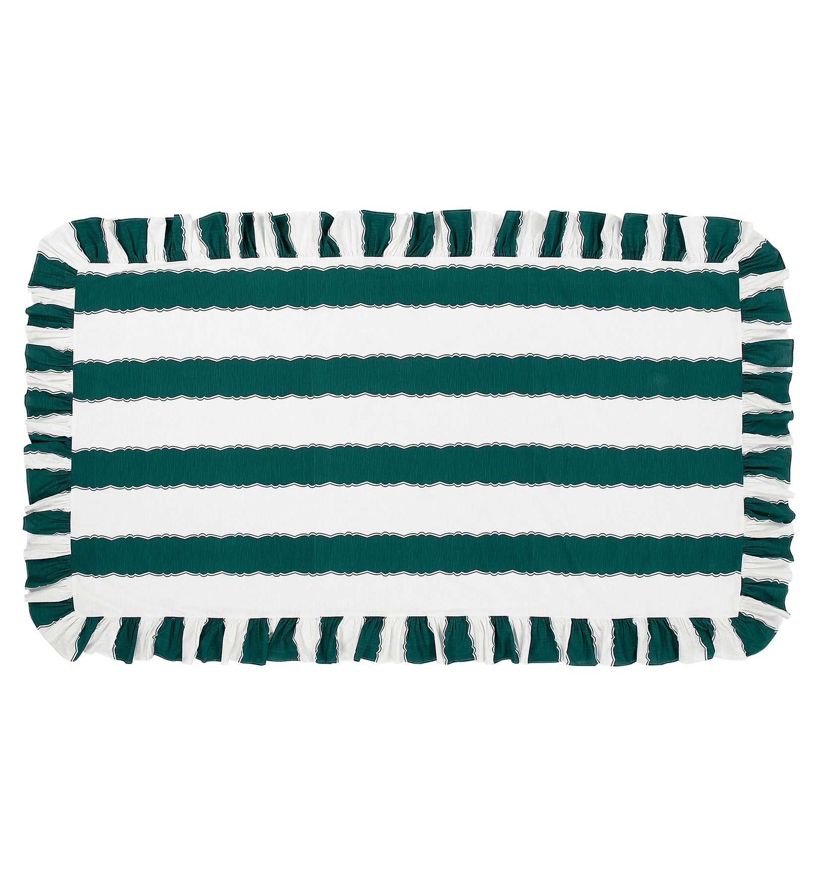 De Forest Ruffle Tablecloth is een leuk item wat je tafelschikking een vleugje elegantie geeft. De groen witte strepen in combinatie met de ruffelrand zorgen voor een unieke uitstraling.