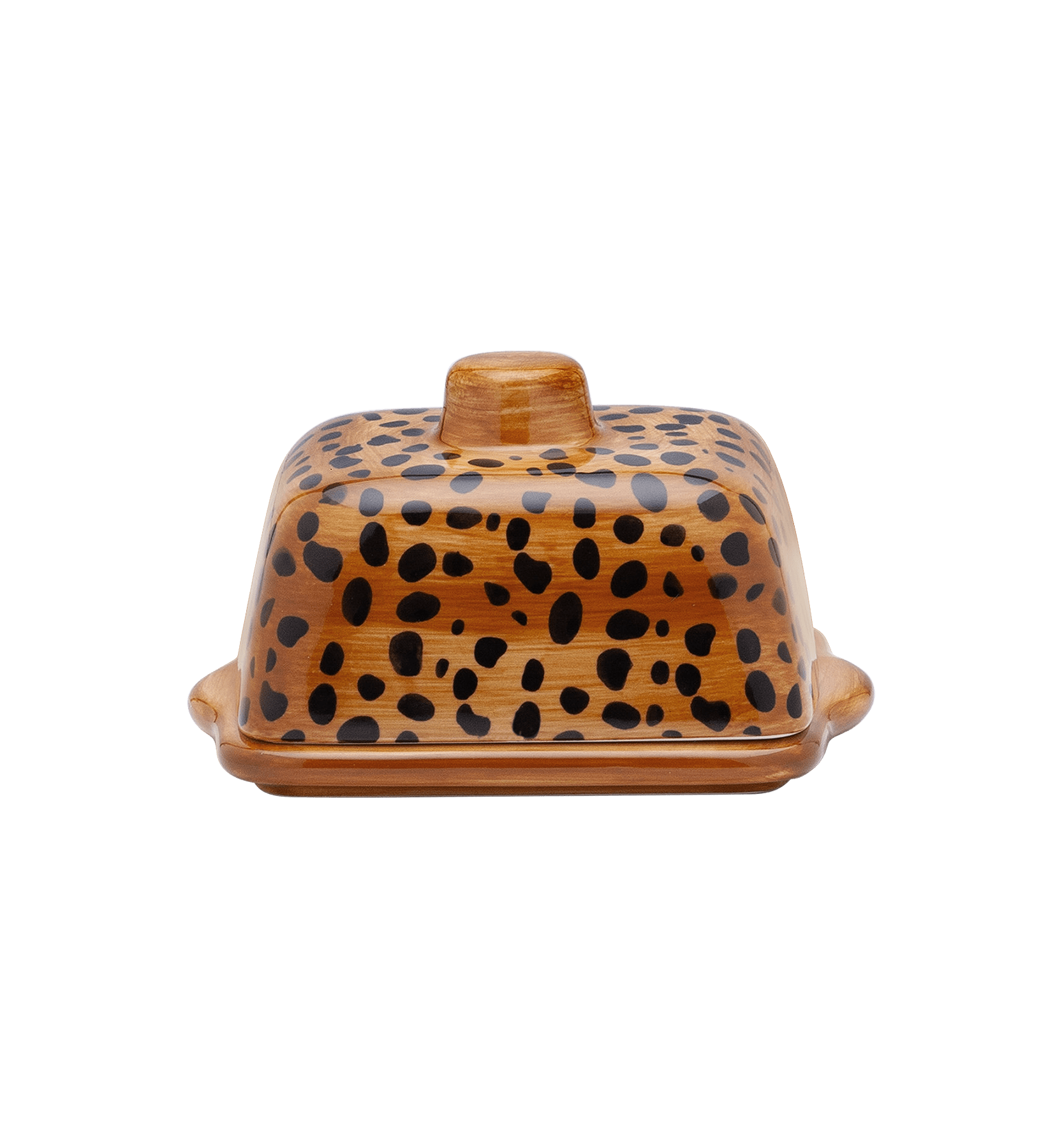 De Leopard Butter Dish is een uniek stuk met een gedurfde luipaardprint. Dit magische stuk illustreert perfect hoe alledaagse dingen buitengewoon kunnen worden gemaakt. Voeg wat avontuur toe aan je keuken met deze prachtige boterschaal.