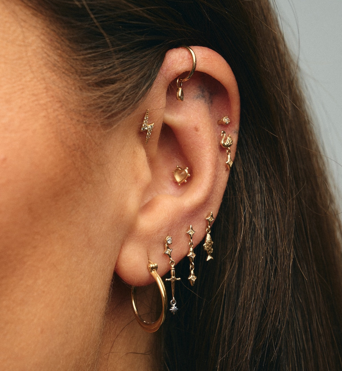 De Loving Hollow Piercing Front 14K heeft een verfijnd hartvormig ontwerp met een gele lemon crystal in het midden. Gemaakt van 14K goud is deze piercing een tijdloze en elegante toevoeging, perfect om een romantische touch te geven aan je ear stack of te combineren met andere piercings uit onze collectie.