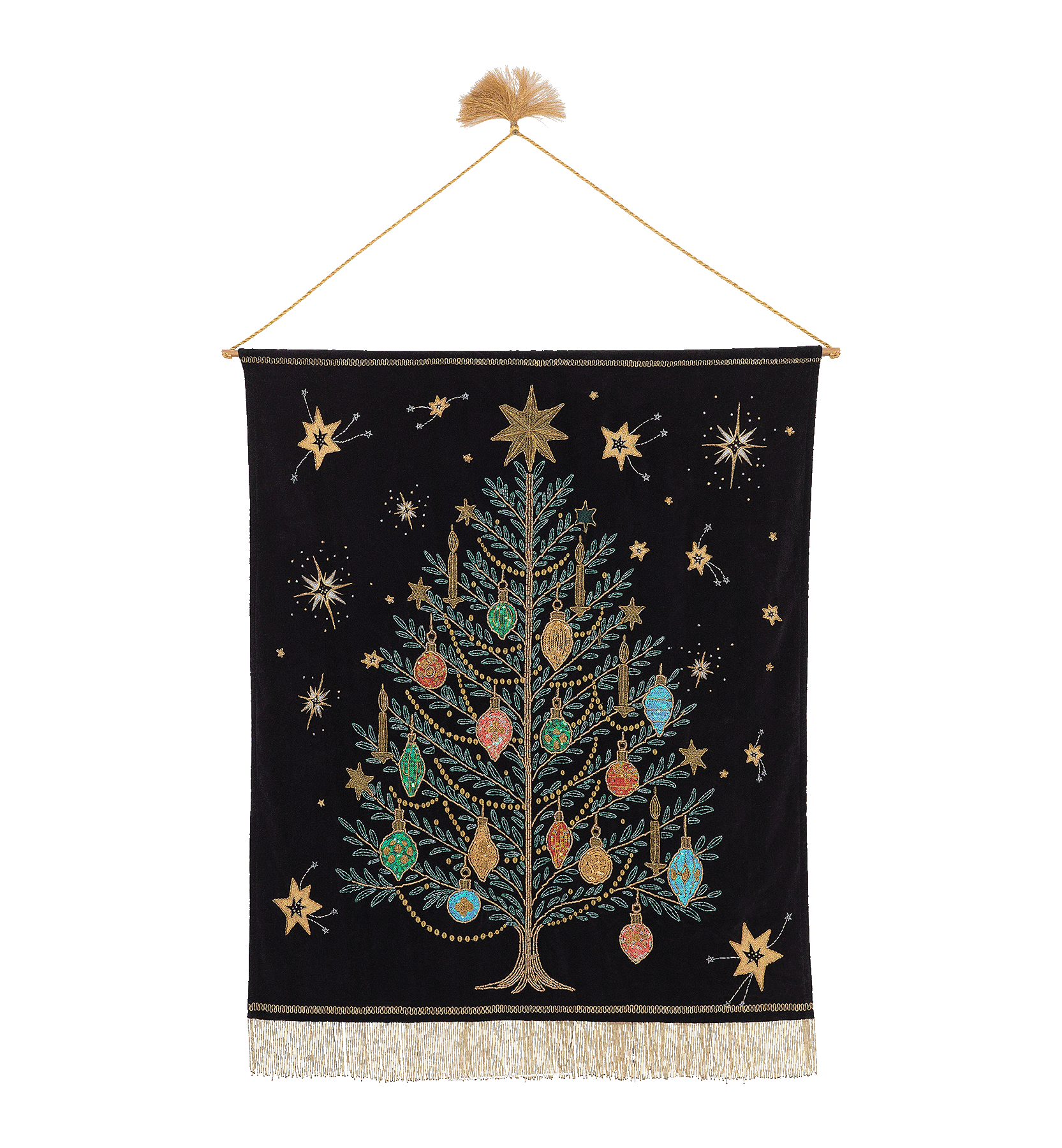 De Spirit Of Christmas Tapestry XL brengt de magie van het feestseizoen in huis. Gemaakt van 100% katoen, met kralen en borduurdetails, is dit prachtig vervaardigde wandkleed de perfecte toevoeging aan je kerstdecoratie.