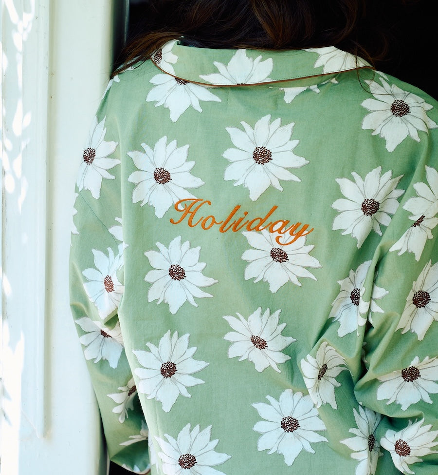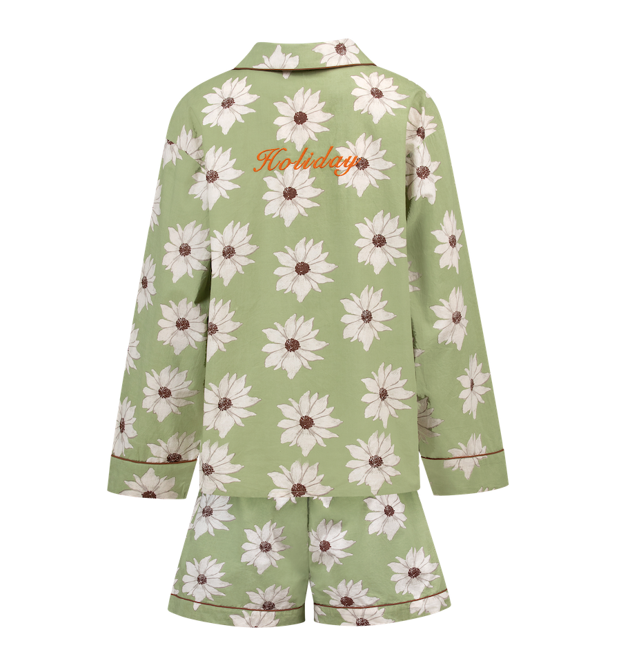 De White Lotus Dreams Pyjama is gemaakt van organisch katoen en geïnspireerd op een witte lotus. Op de rug staat Holiday geborduurd, wat je gelijk meeneemt naar de zomerse vakantiedagen. Dit item is een echte must-have voor deze zomer.