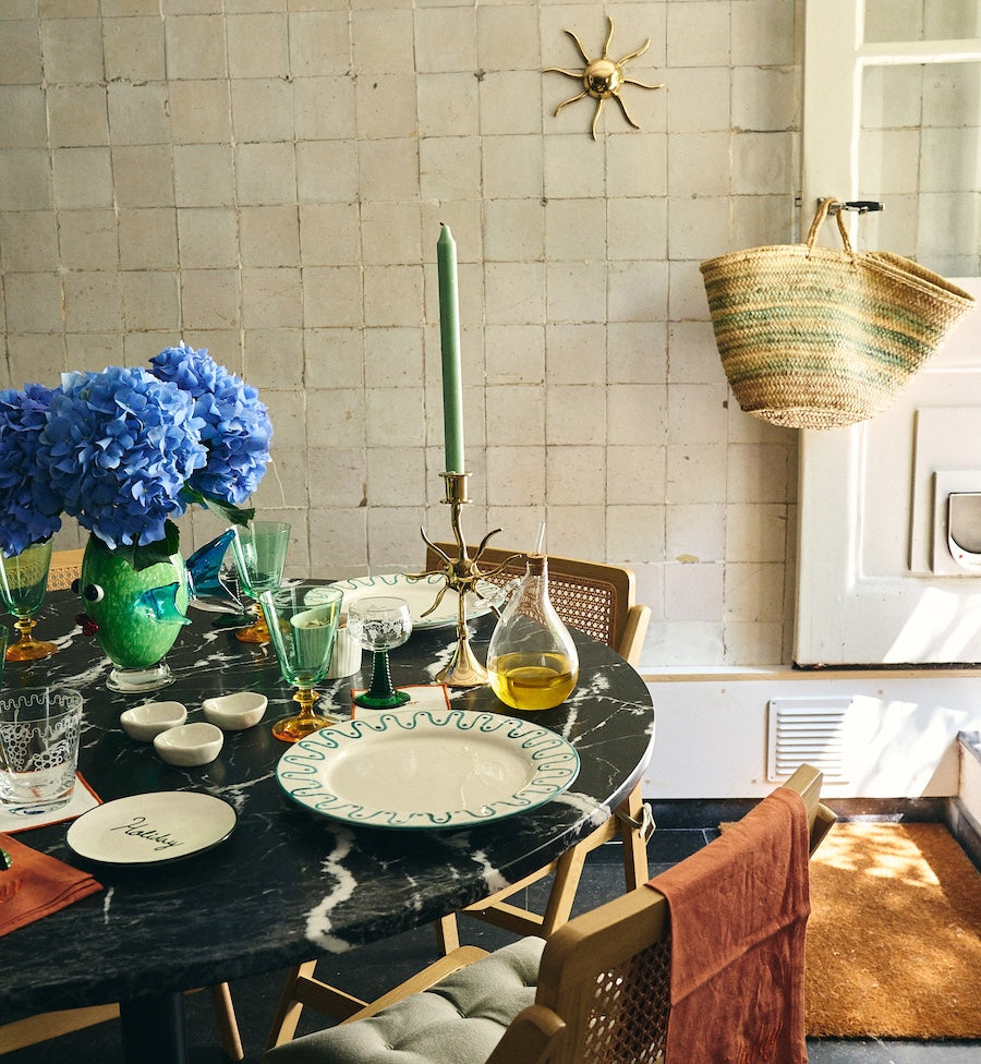 Our talented in-house designers create our collections with the utmost care and love. We carefully and consciously develop every A+N item. Our jewellery is crafted by hand by original goldsmiths in Thailand. Our ceramics are hand-painted by artisans in Portugal. Our glass candle holders are mouth-blown by experts in Egypt.