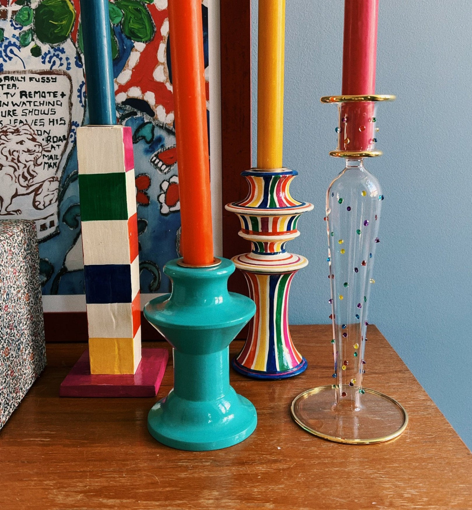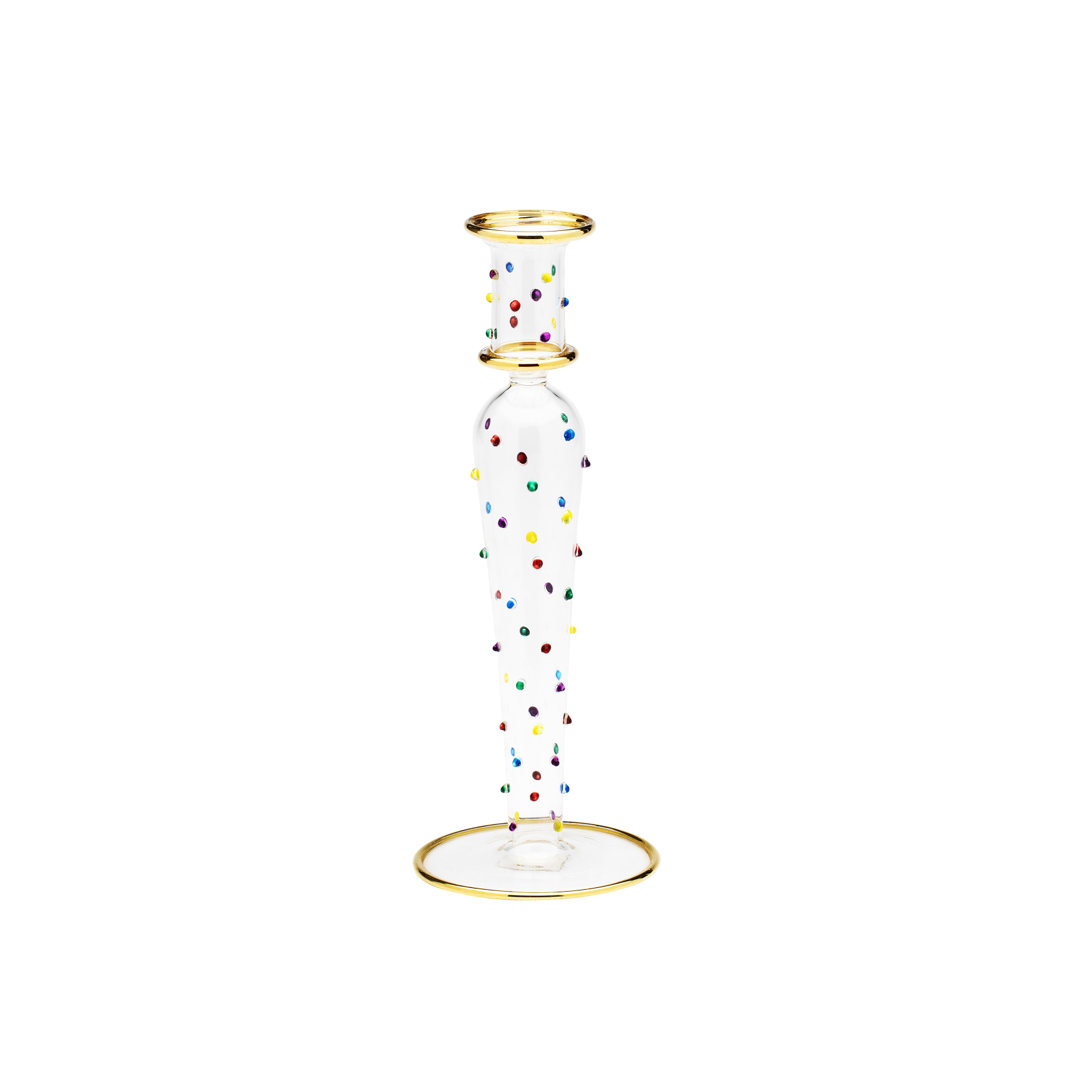 The Confetti Glass Candle Holder is a playful piece with its speckled design and golden edges. This candle holder will look perfect in any room of your home, but can also elevate your table setting.