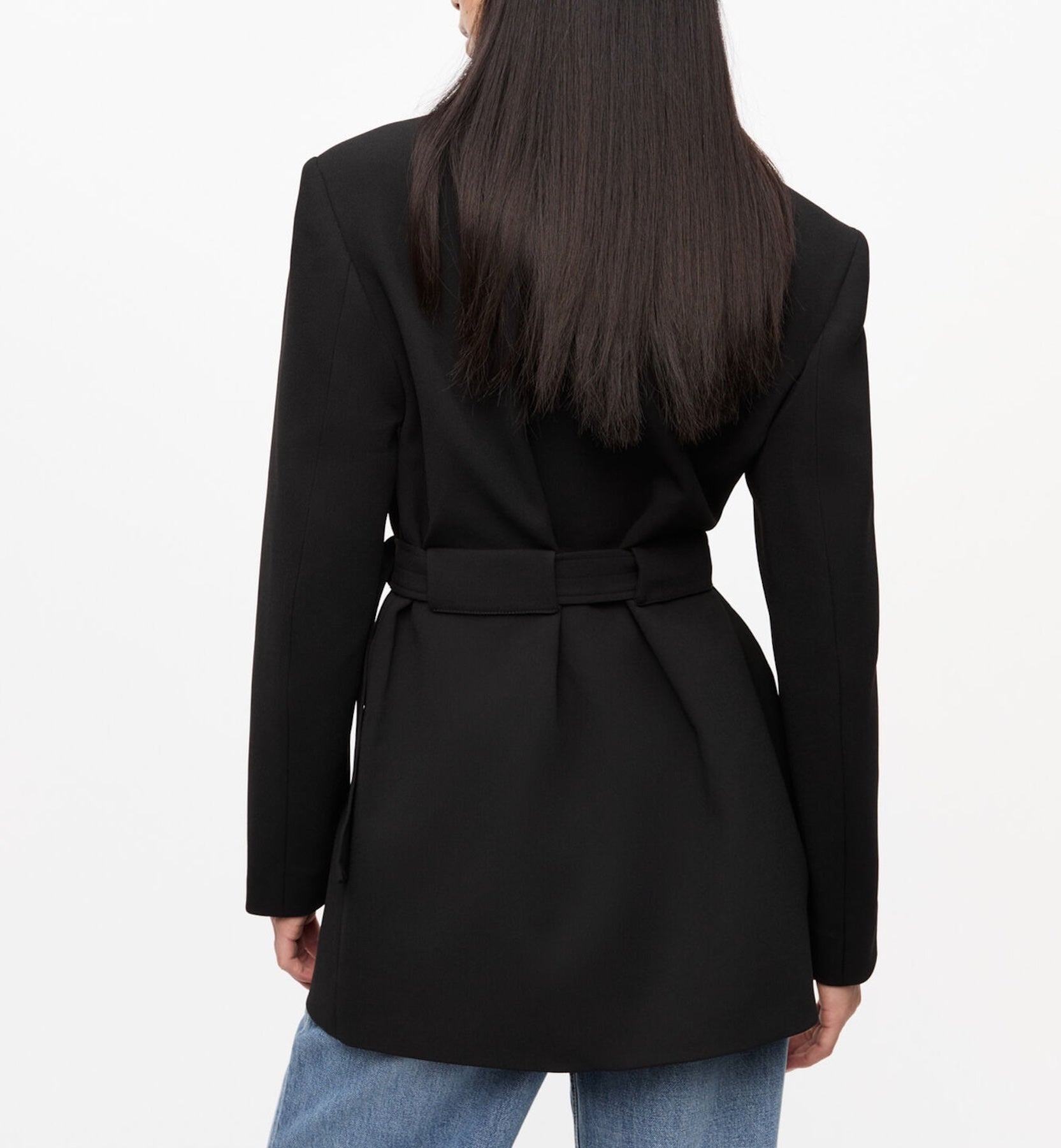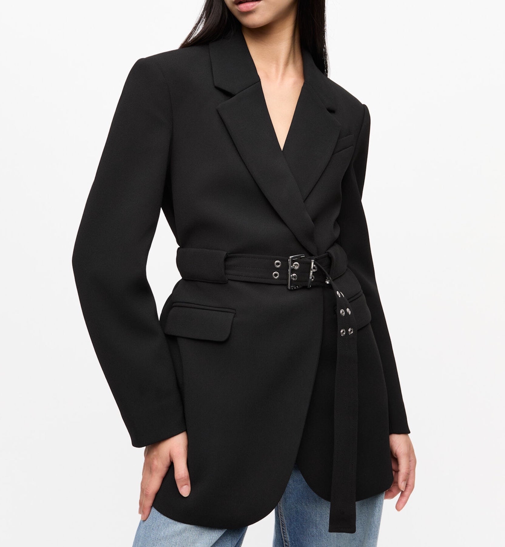 The GANNI Bonded Crepe Cropped Blazer puts a modern, feminine spin on the classic blazer. The cropped silhouette and statement bow details on the sleeves create a playful look. A standout piece that instantly elevates any outfit, from casual to evening wear.