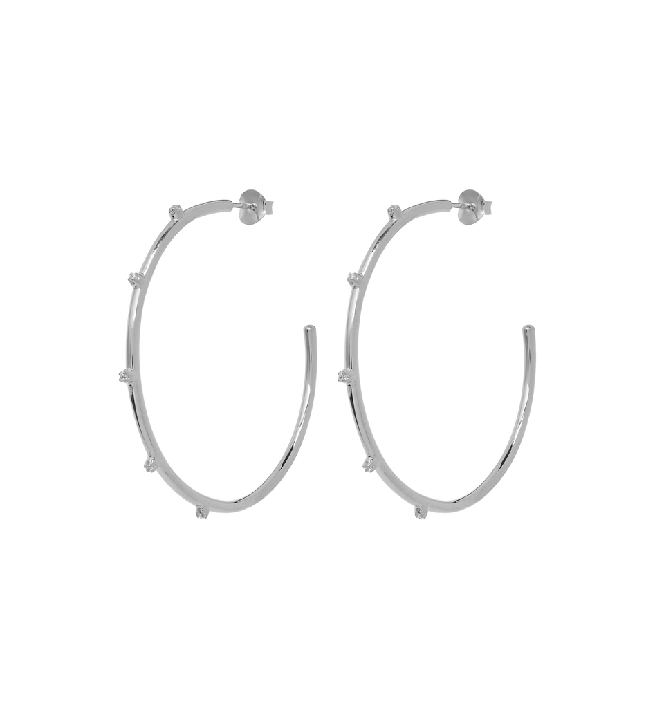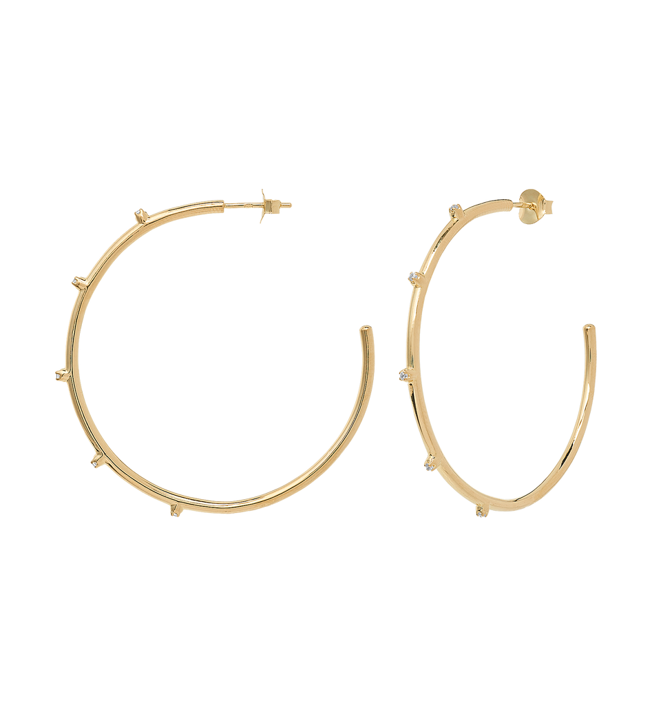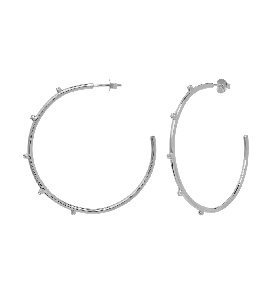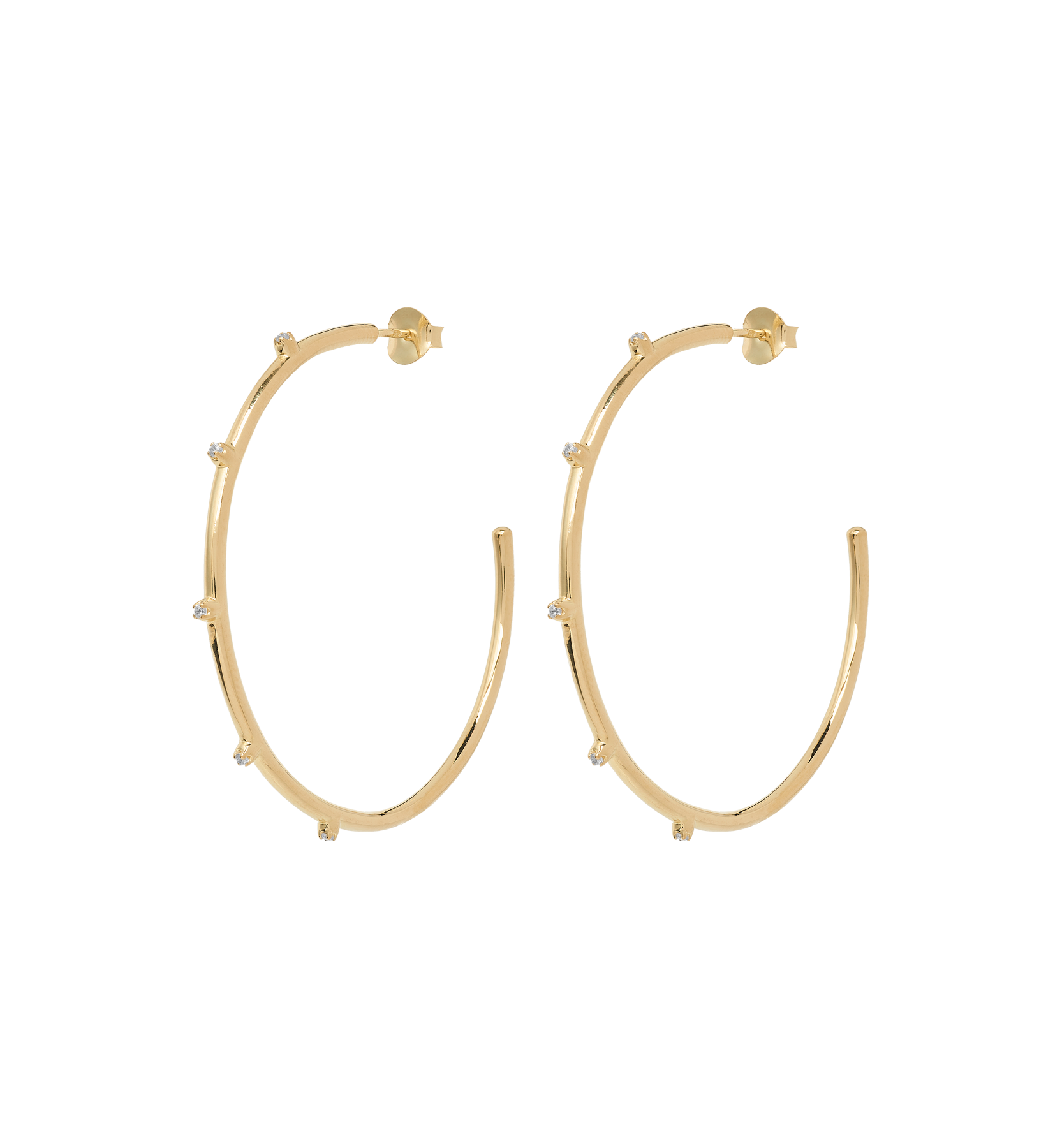 The Large Lumière Hoop Earrings are basic earrings with charming detail. The five Zirconia stones give the earring a playful twist. Wear this item for a night out or with a casual outfit.