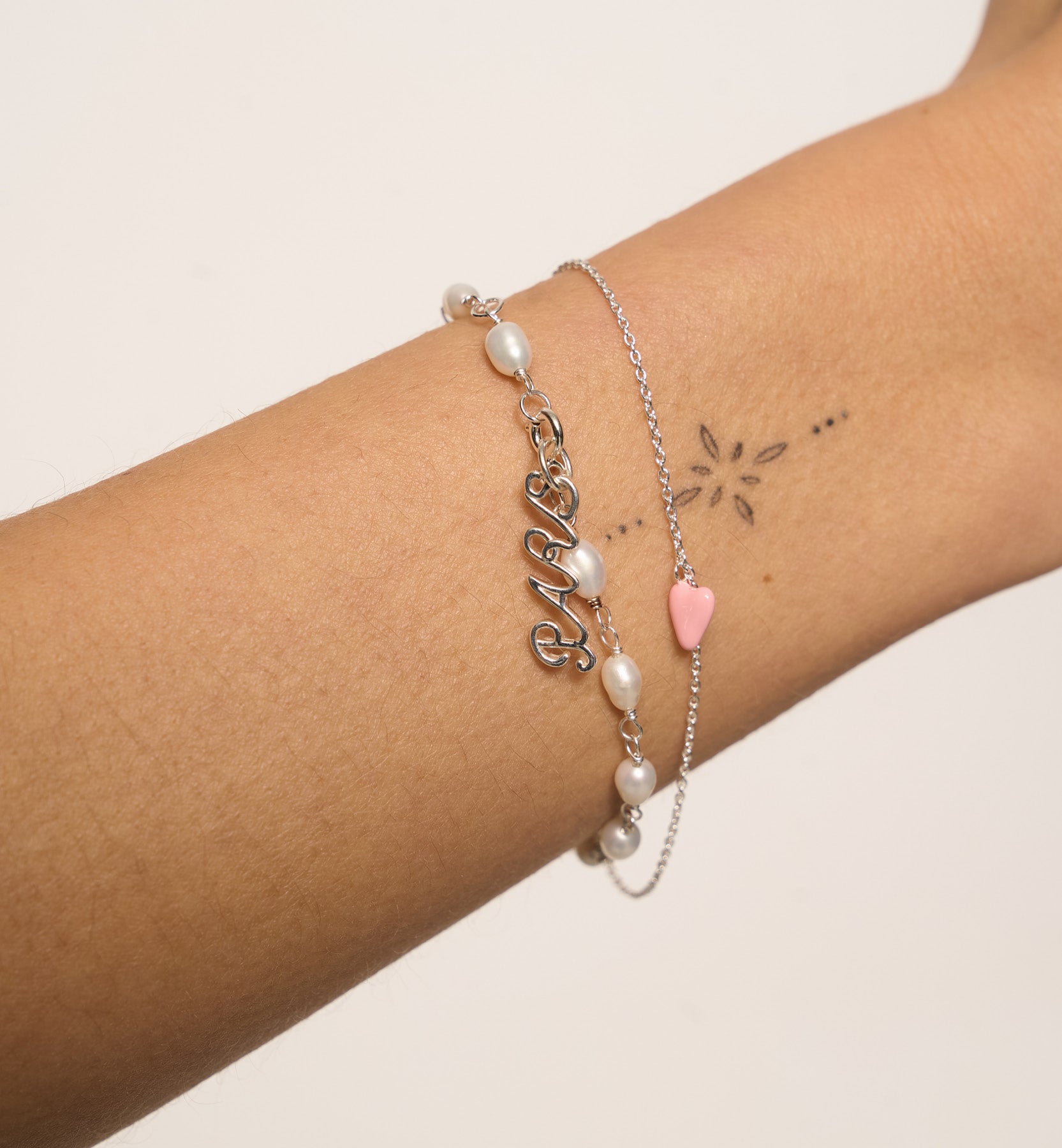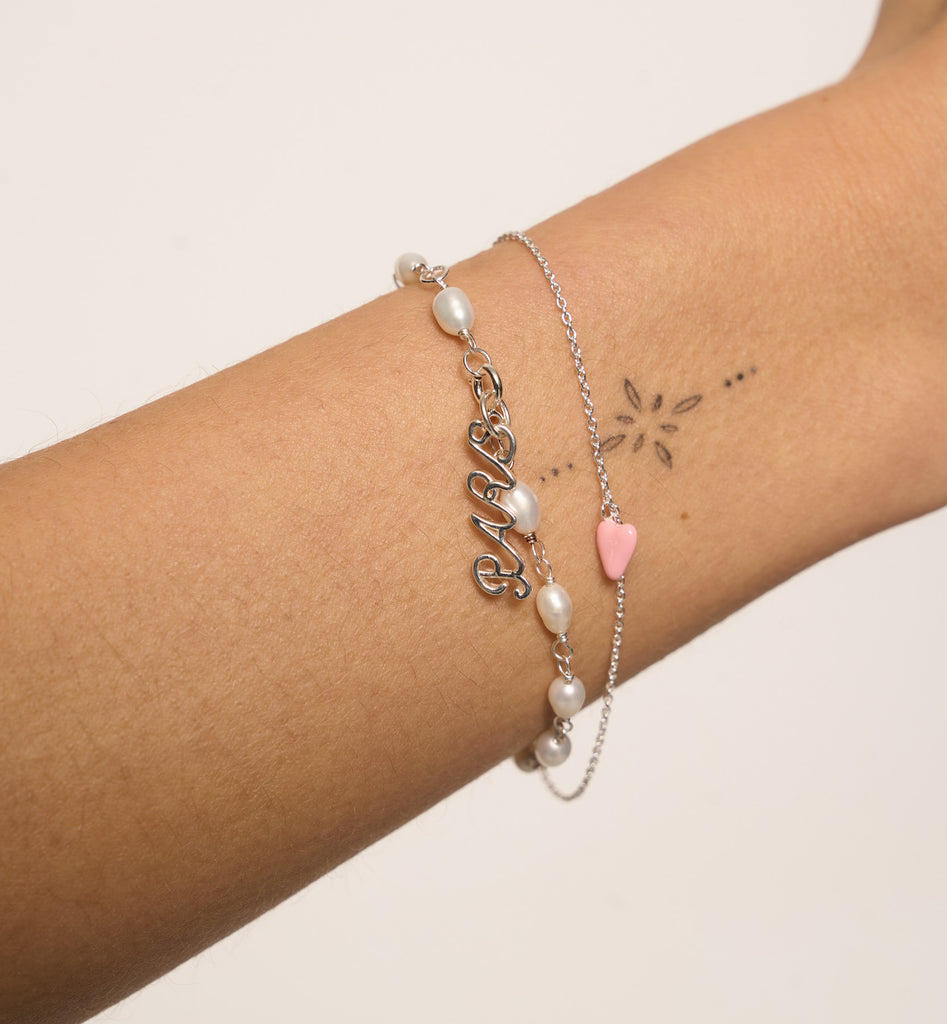 The Rose Heart Beat Bracelet is a beautiful bracelet featuring a pink heart charm in the centre. Pair it with other items from the collection for the perfect match.